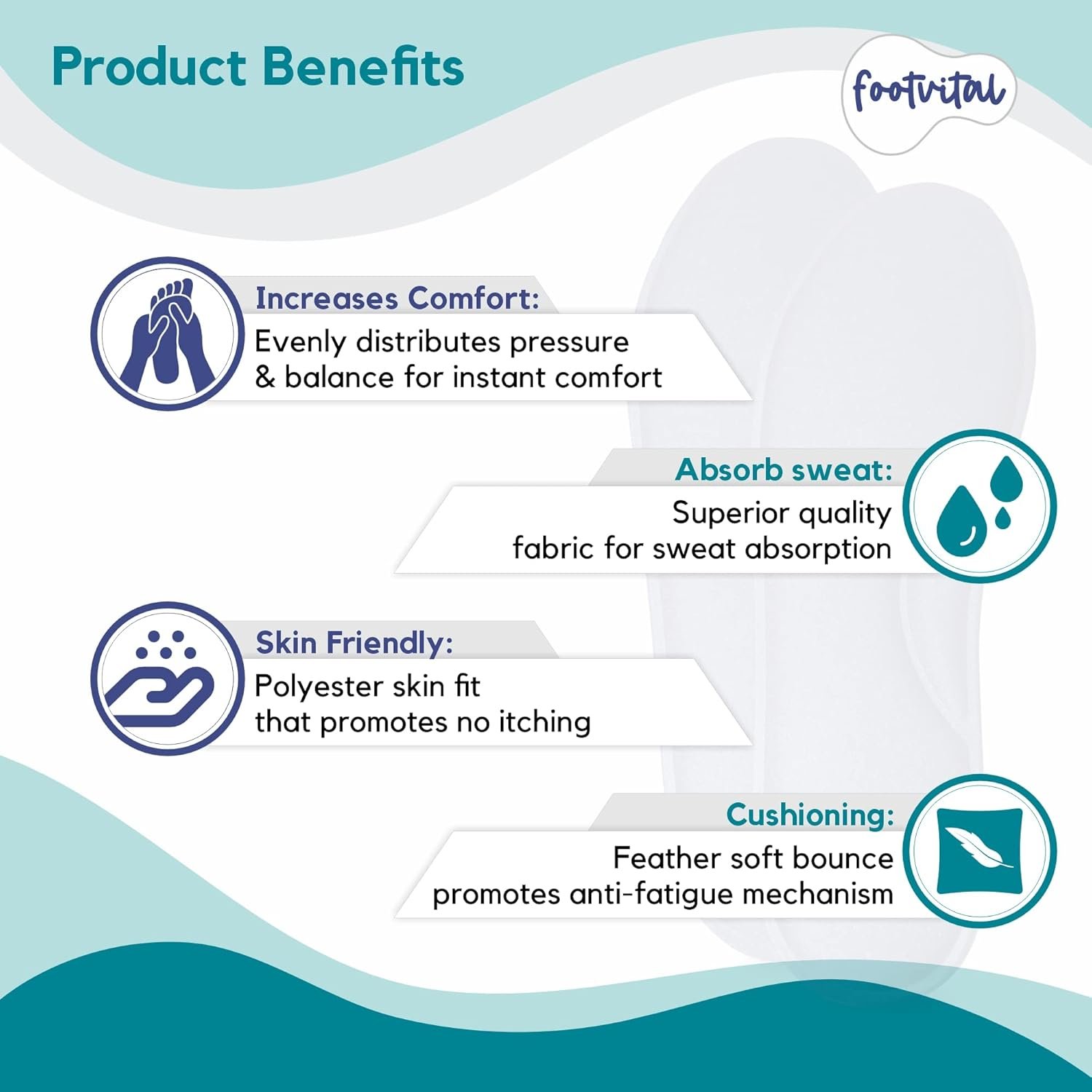 ABSORBS SWEAT & MOISTURE: Footvital Shoe Insoles work well with Footvital Roll On as both work best for sweaty feet, and absorb foot sweat and moisture & thereby maintaining dry feet.