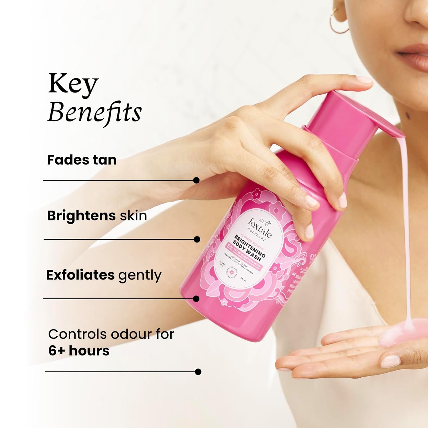Long-lasting freshness: This brightening body wash works like skincare, wears like perfume. Our signature floral perfume keeps skin fresh all day long.