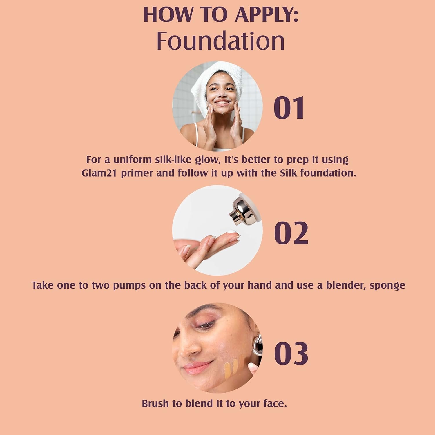 Glam 21 Silk Foundation-Lightweight Hydrating Oil-free Satin Formula for Long-lasting Makeup | Balance Skin pH Level | SPF35 UV Protection | Suitable for All Skin Type| 50gm, 05