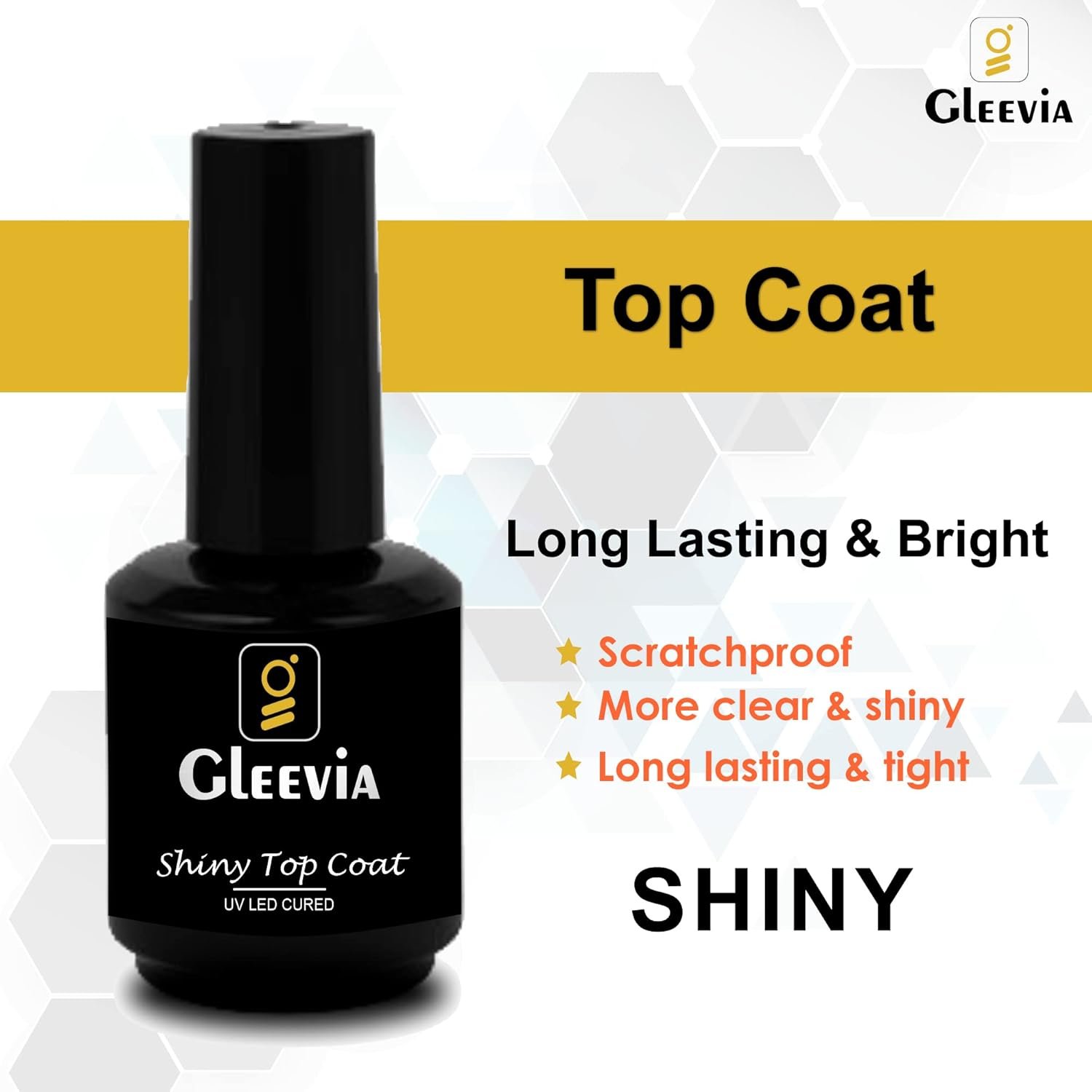 Gleevia No Wipe Top Coat and Base Coat: Long lasting for 21+ days with perfect shine. Flexible top coat avoids nicks, chips, or smudges. Tip: It’s normal for the base coat to remain sticky which would give the next coat of polish something to hold onto.(Tip: The base gel can not be used as glue. )