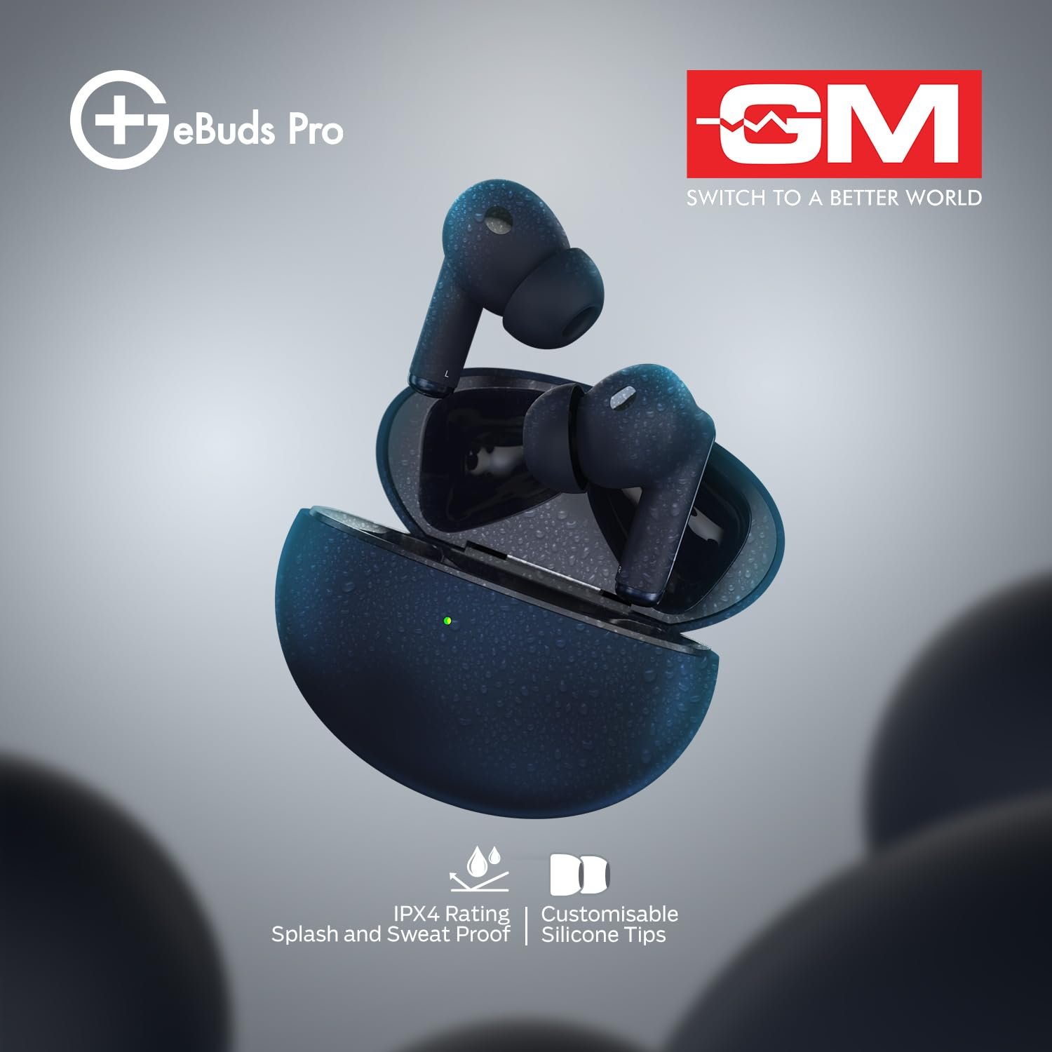 GM True Wireless Earbuds for Uncut Sound, 30dB ANC, Smooth Sound, Wireless Charging, Quad-Mic Crystal Clear Calls, Immersive Sound and Low Latency – Blue