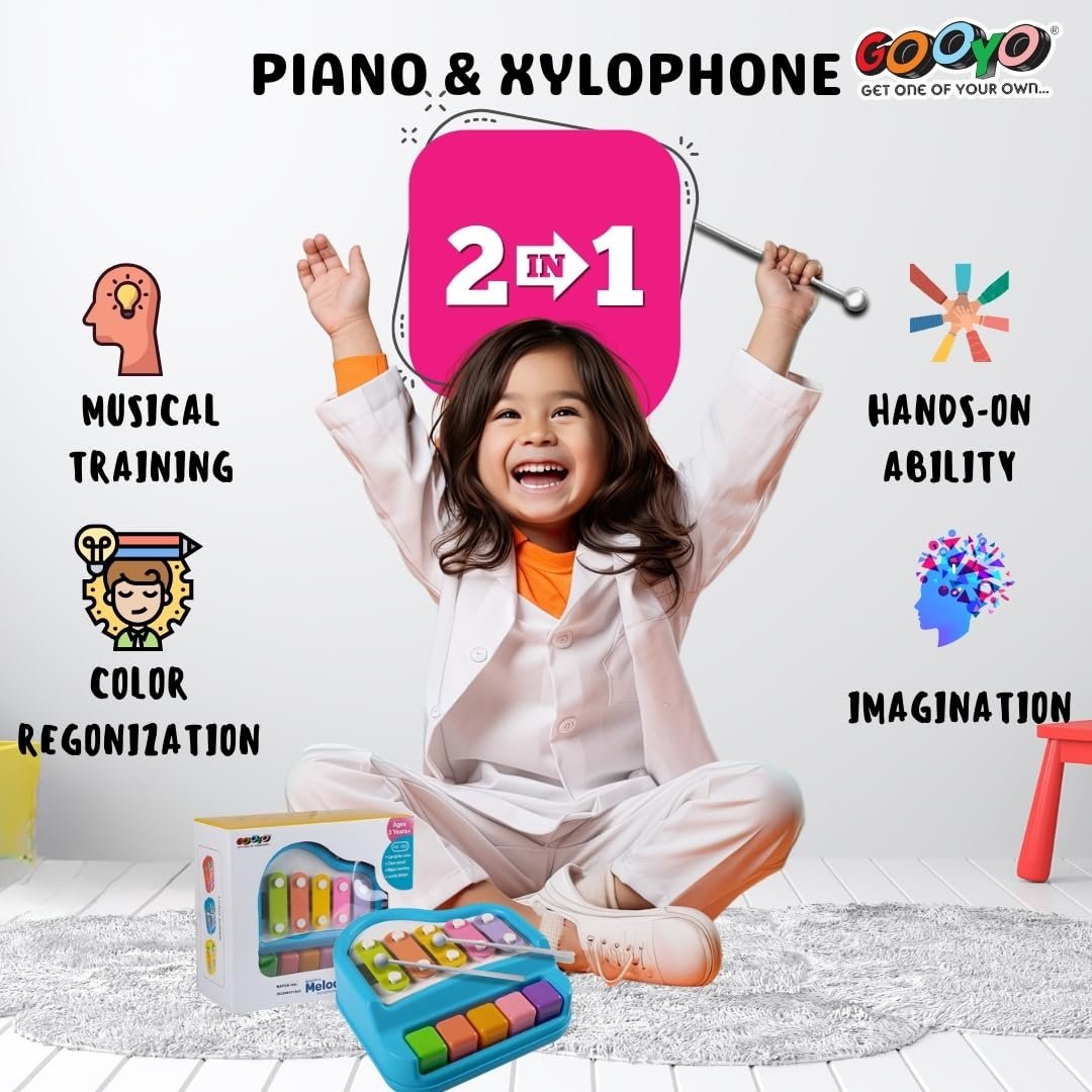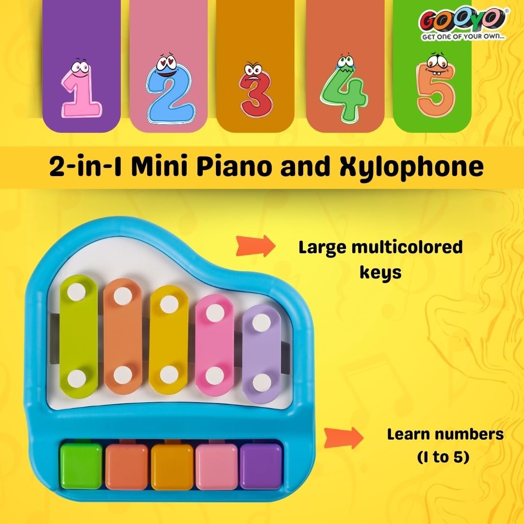 Gooyo 1503 Non Battery 2 in 1 Mini Piano and Xylophone Toy with Colorful Keys & 2 Mallets for Babies/Girls/Boys/Kids/Gifts | Blue Color (Battery Not Required)