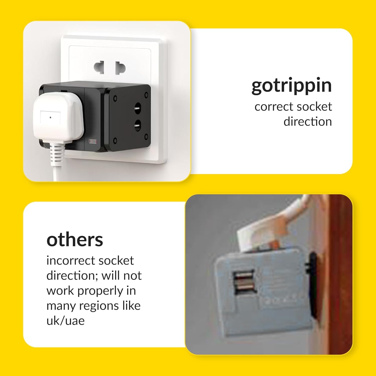 Gotrippin Universal Charger Adapter with Type C- 20w Type C + 18W USB A – International Worldwide All in One Travel Charger Plug with Universal Socket for USA, Canada,UK, Europe, Dubai, and More