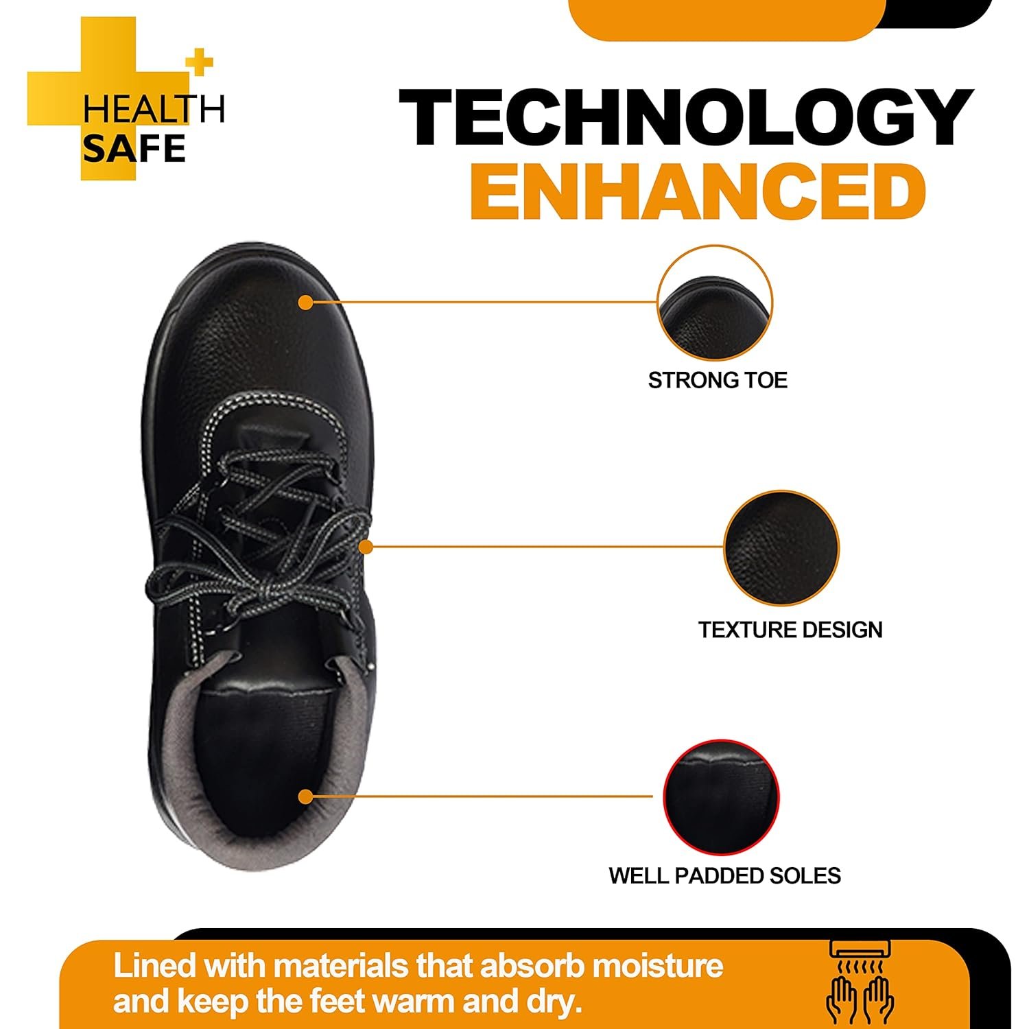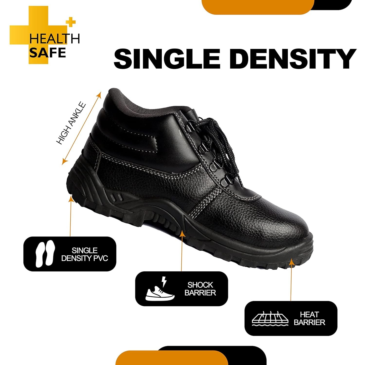 HEALTH SAFE high Ankle fine Material Safety Shoes with Good Bond Strength for Industrial Work,100% rexcine | Waterproof |Puncture Proof |Anti- Skid |(UK-8,Black)
