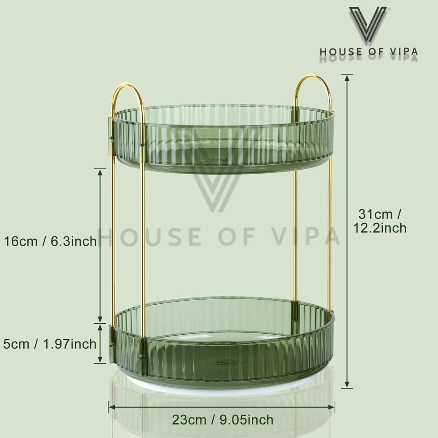 HOUSE OF VIPA 360° Rotating Makeup Organizer Box – Cosmetic Storage with Drawers, Plastic Makeup Holder Stand for Dressing Table, Lipsticks, Nail Polishes & Accessories (Gem Green, 2 layer)