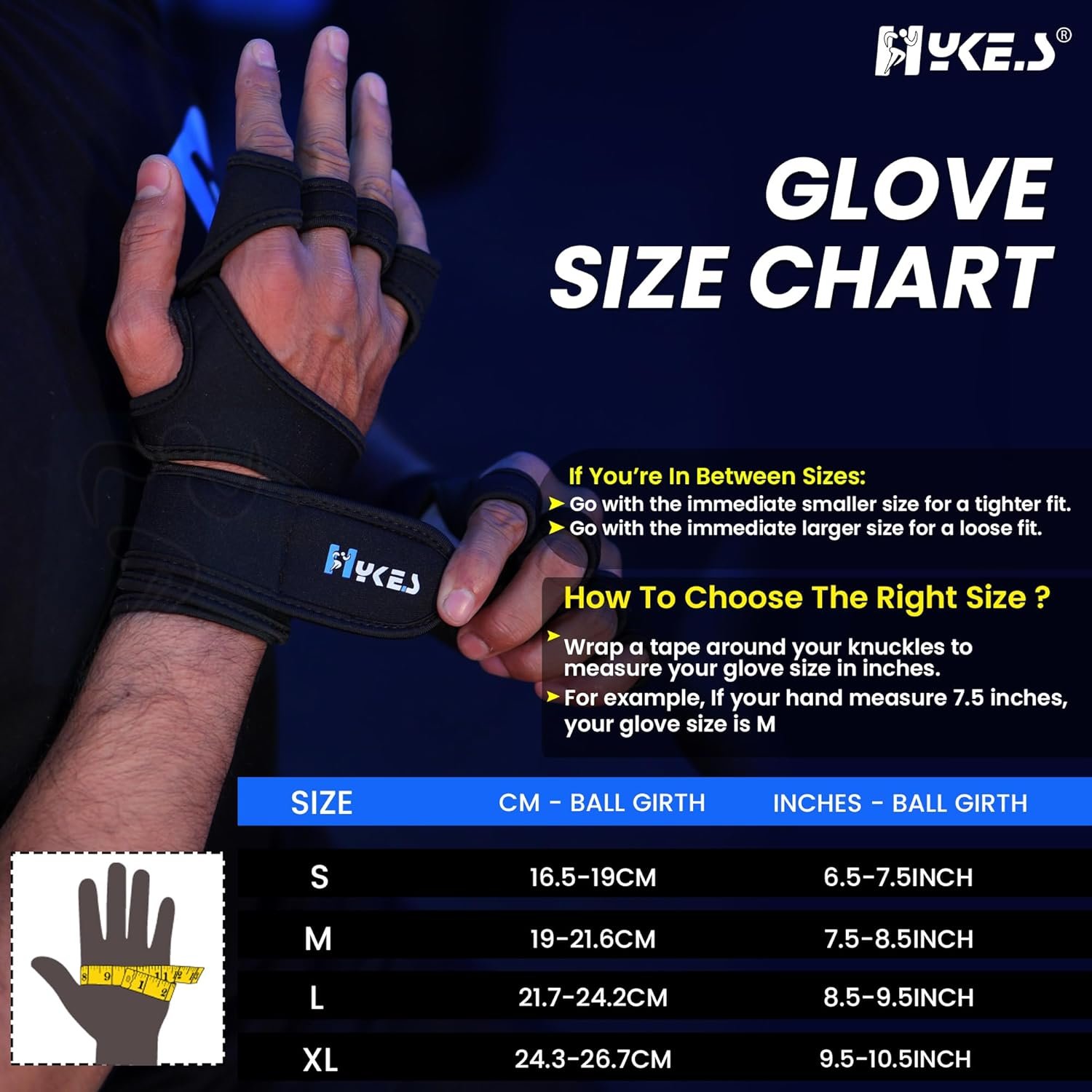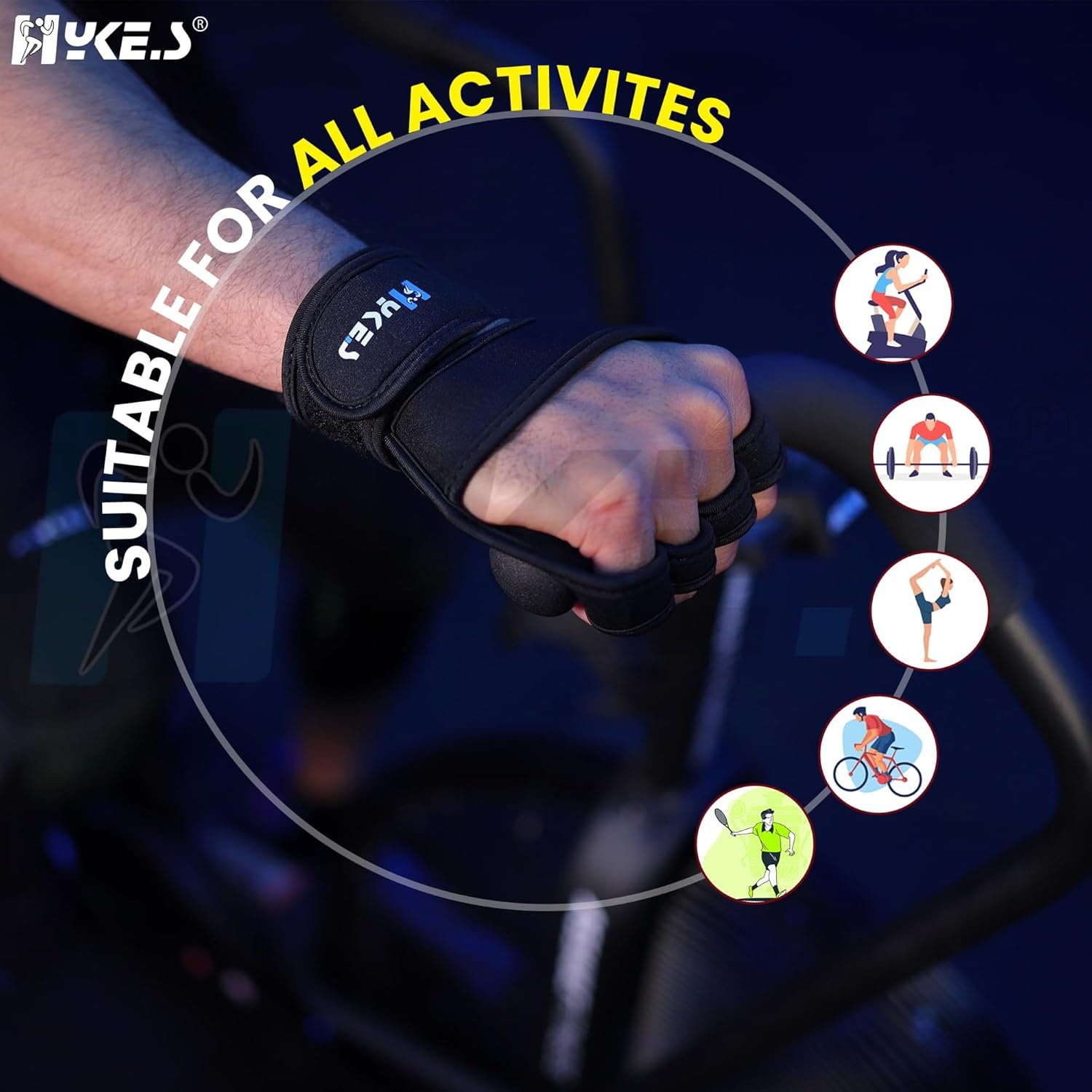 Hykes Gym Gloves – Weight Lifting Hand Grips with Wrist Wrap Support – Workout, Excercise, Fitness, Training, Powerlifting – Men and Women (Medium, Neoprene, Black)