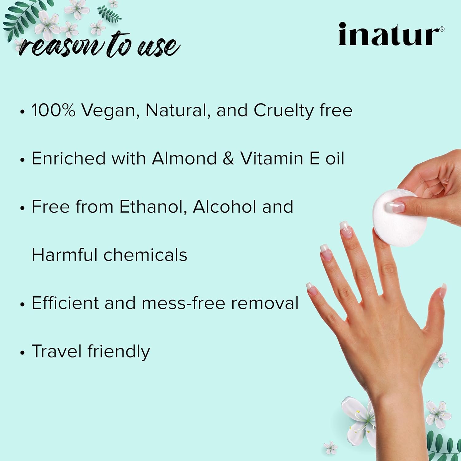 EFFORTLESS NAIL PAINT REMOVAL: inatur Nail Paint Remover wipes remove even stubborn nail paint without harsh rubbing.