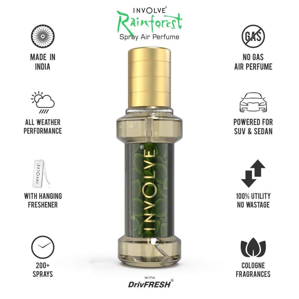 Involve Your Senses Rainforest Forest Lavender Scent Car Spray Air Freshener, white, 30ml- IRF02 | Car fresheners | Car accessories interior| Long lasting fregrance | Car perfume
