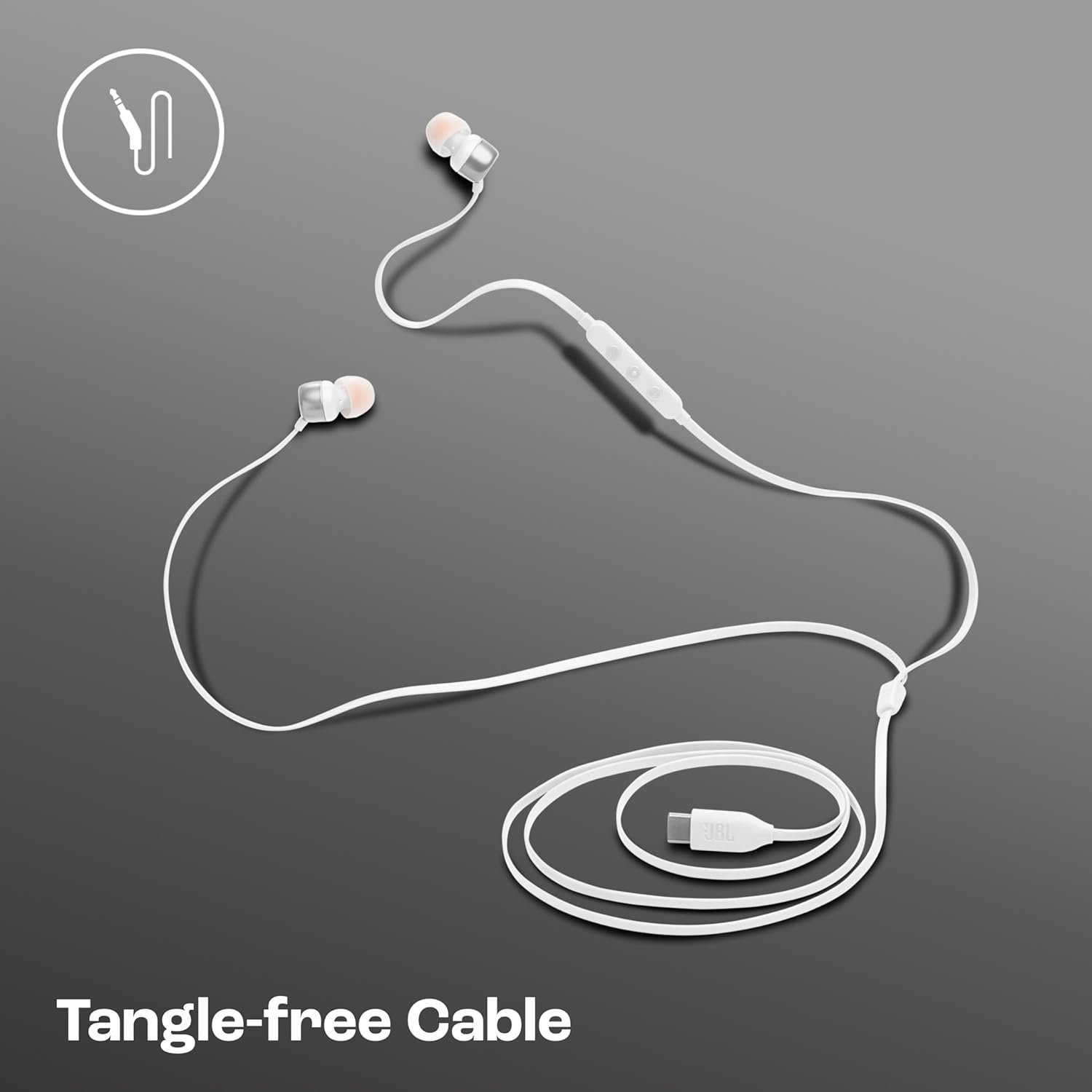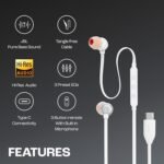 JBL Tune 310 in Ear Type C Wired Headphones, Hi-Res Audio with Digital-to-Analog Converter, 3-Button EQ Preset Remote with Microphone, Tangle-Free Flat Cable, Compatible with USB-C Devices (White)