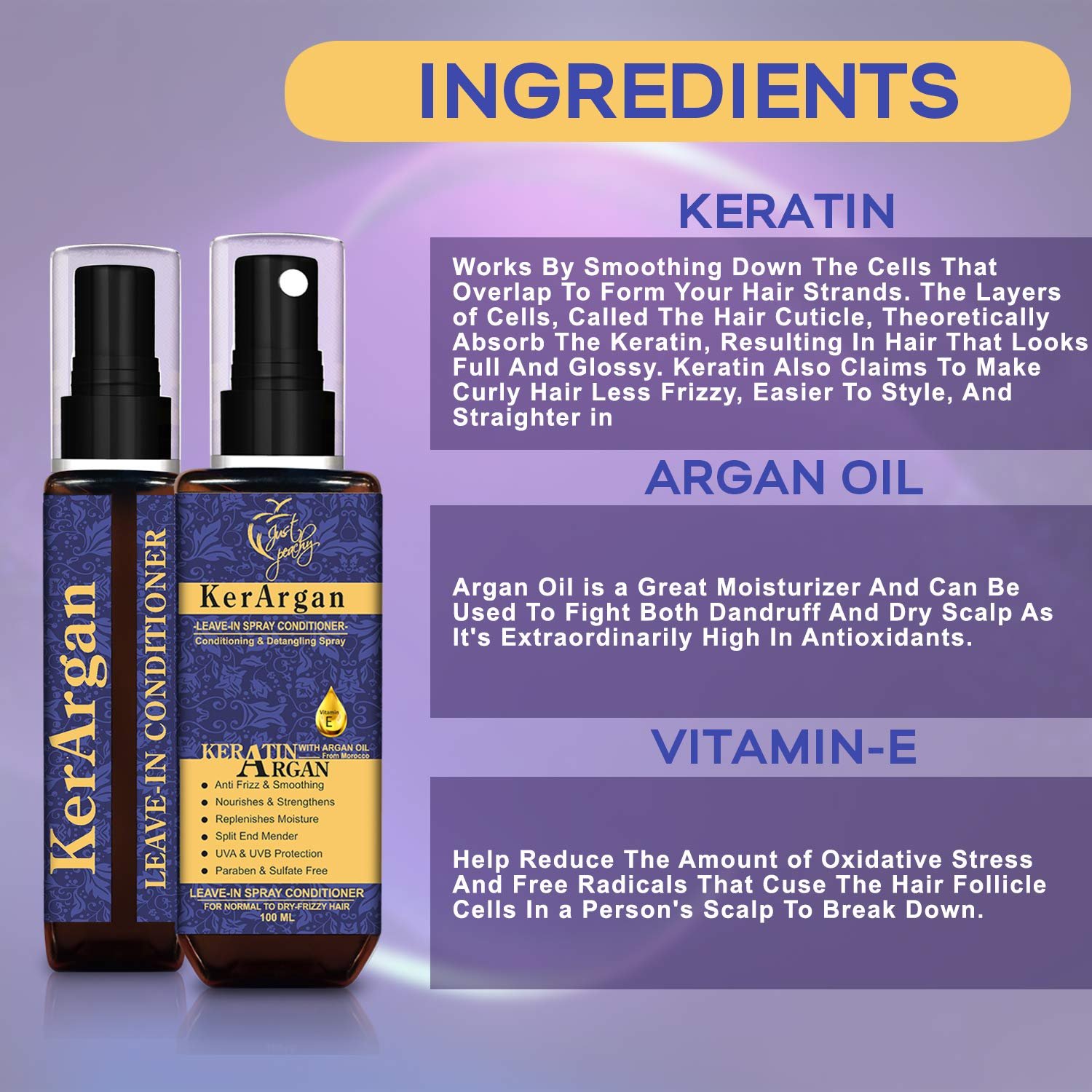 Tags: 100ml, Argan, Conditioner, Detangling, Hair, Keratin, LeaveIn, MIST, Oil, Peachy, shining, Strengthen, Vitamin, Women