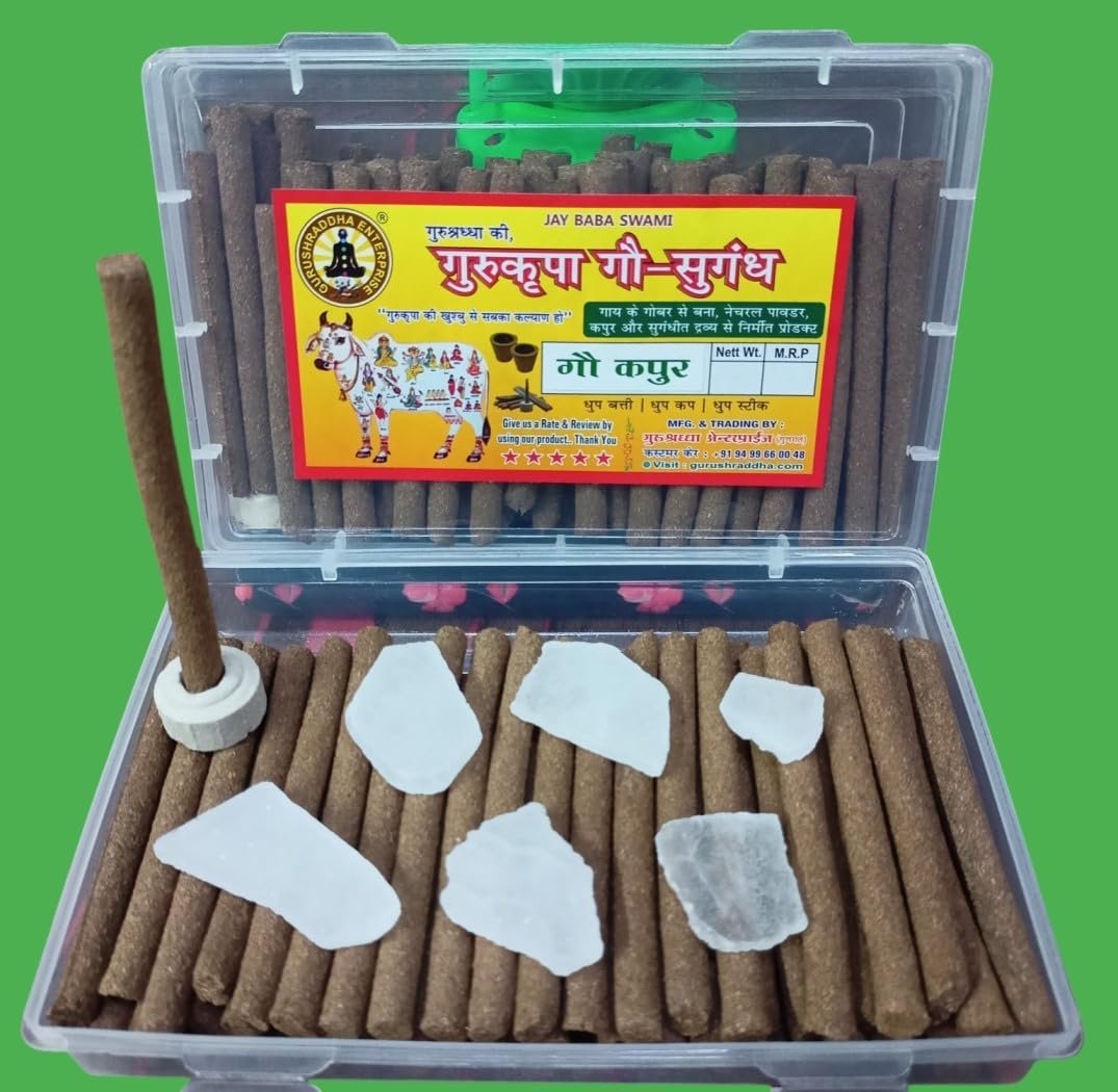 Cows and Camphor their products are a part of everyday Hindu life,because they enhance health and well-being and strengthen immunity. The purification and antiseptic properties of cow dung also have many uses in our daily life and worship. When dung is burnt, it produces an extraordinary amount of oxygen, which effectively fights pollution and makes the environment more pleasant and lively. Incense sticks are also very effective in increasing attention and concentration, so in Indian cultures, monks and saints have made it an integral part of their monasteries and places of worship. Burning of incense sticks made from desi cow dung destroys harmful bacteria and viruses and provides an air of divine purity. Therefore, always look for the most aesthetically pleasing incense sticks made from Indian cow dung. It is made using all natural ingredients. Gurushraddha products are environmentally friendly, non-toxic and free of chemicals.