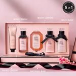 Kimirica Love Story Luxury Bath and Body Care Gift Set Box | Bath Salt, Body Wash, Body Lotion, Bathing Bar and Hand cream | Pack of 5 | For Men and Women | Pampering Kit for Birthday ,Anniversary & All Special Occasions | Premium Gift Packaging 100% Vegan