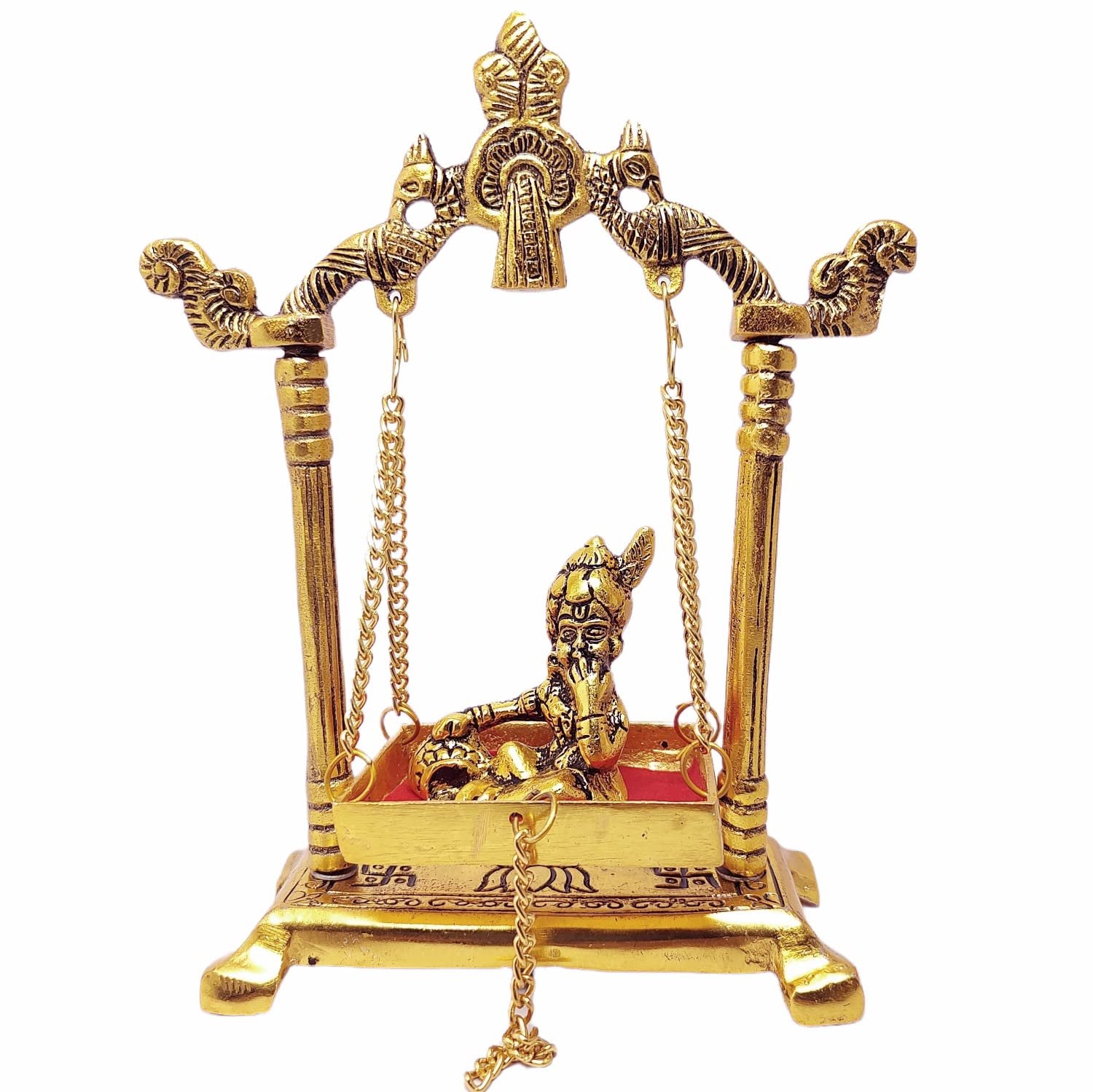 Laddu Gopal swing jhulla Playing Statue carved metal by artist and specially technique with golden color accents to give a look without sacrificing the details