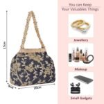 ✅ Package Contains – 1 Piece Potli Bags/Pouches for Women | Color – Moti & Embroidery Design – Black | Material – Polyester | Product Dimensions – 20x9x17 cm