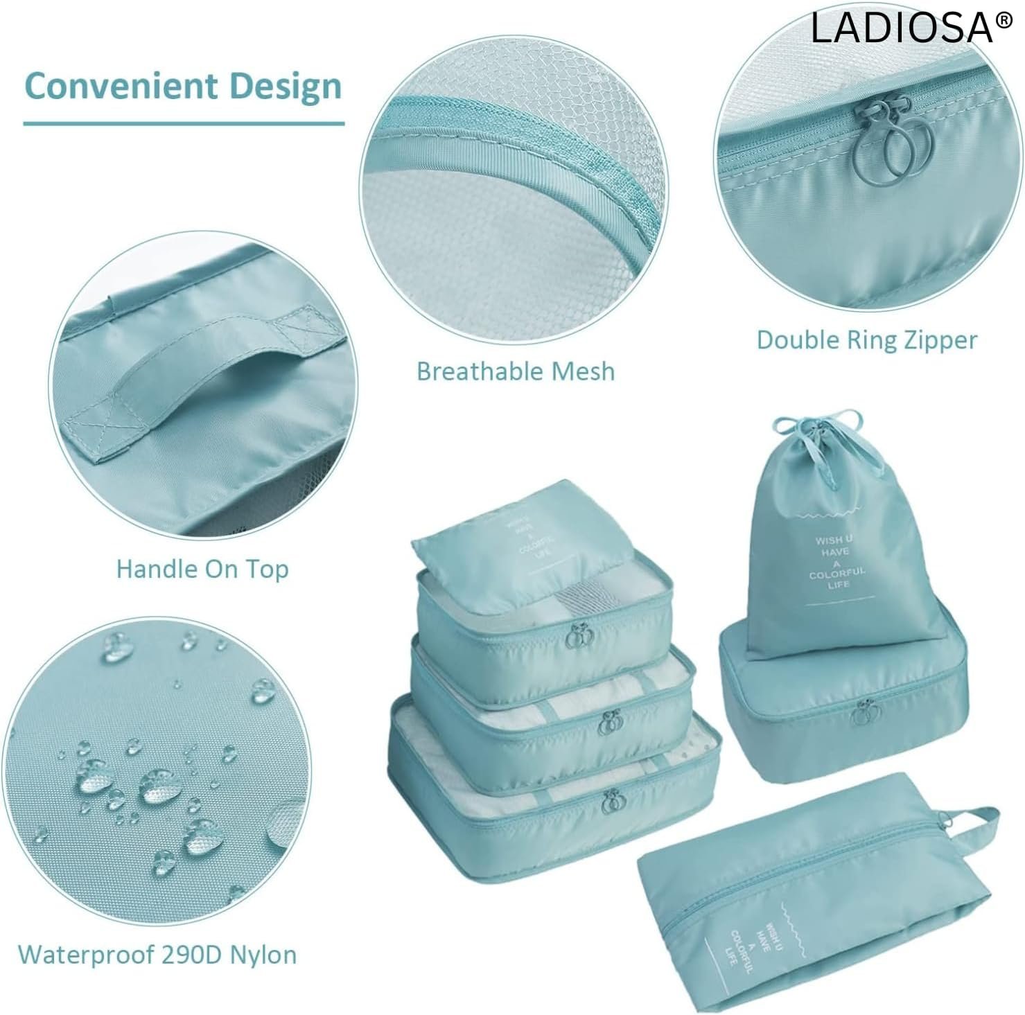 ORDER WITH CONFIDENCE: Ladiosa This packing cubes for travel is lightweight, water-resistant, portable, foldable, easy to storage. Suitable for family, couple for short/long-term travel.