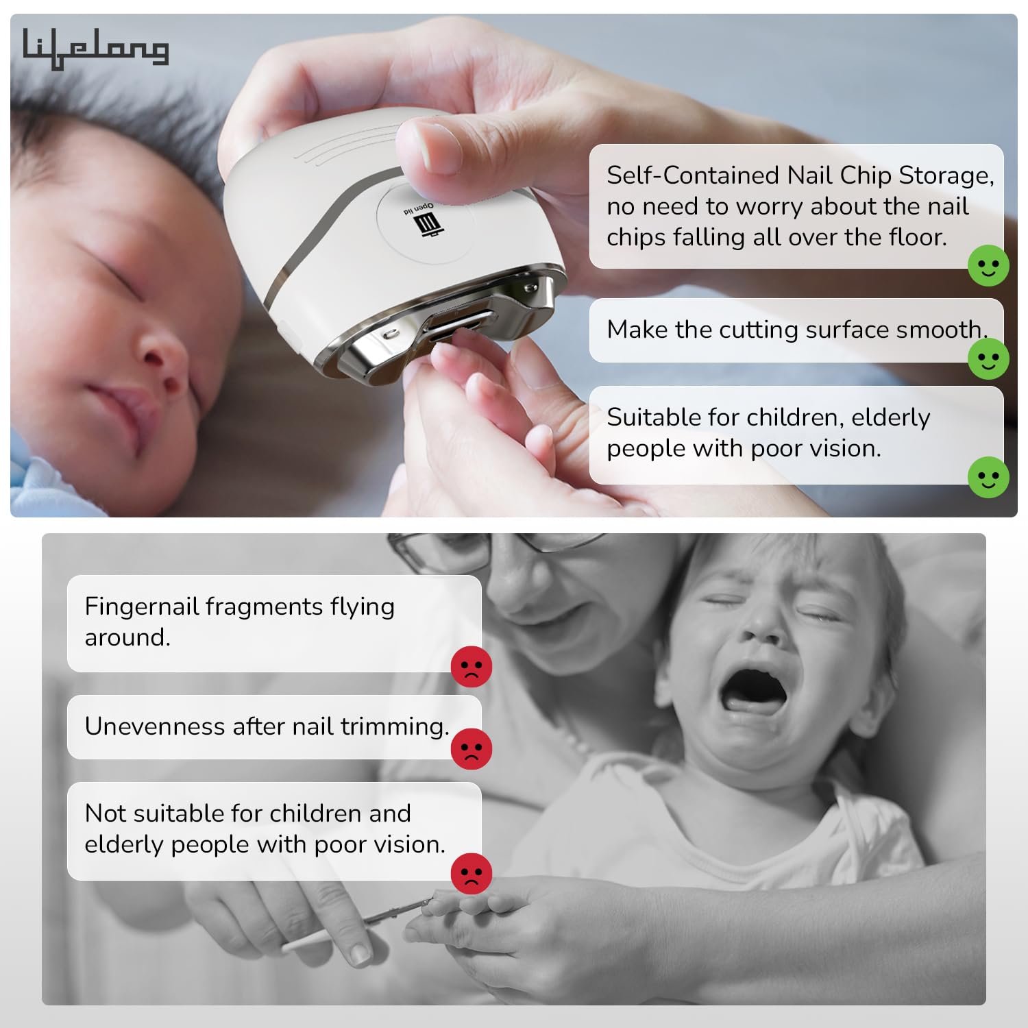 Lifelong Cuppy Electric Baby Nail Trimmer for Newborns to All Age – Baby Nail Care & Grooming Nail Cutter for Baby Boy & Baby Girl – Skin Friendly & Safest Nail Clipper with Cleaning Brush