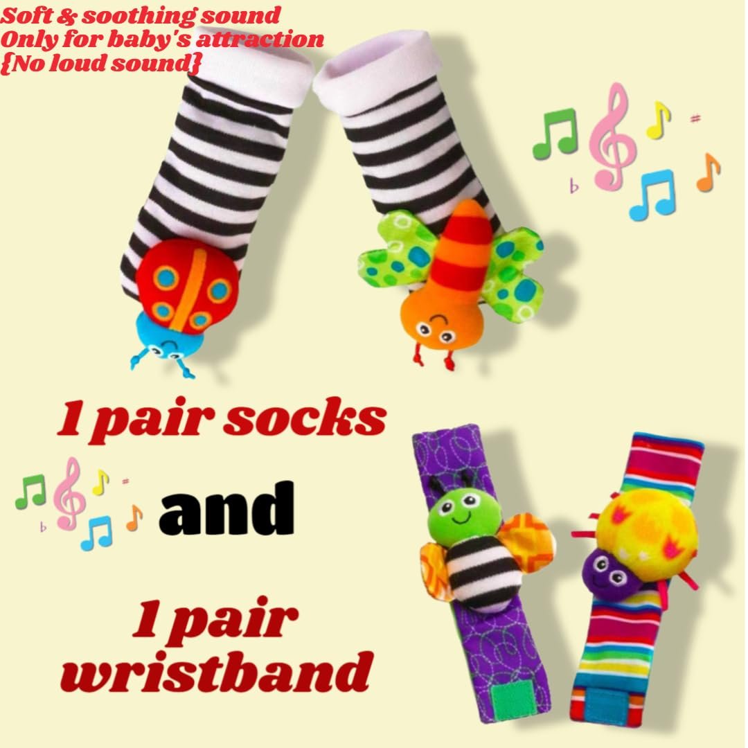 π΅ Baby Rattle Socks Toy: Soft Wrist and Sock Rattles for your baby.These baby toys 0-3 months designed with high-contrast colors and smiling animal looks. These baby rattles 0-6 months include 2 Pcs of wrist rattles and 2 Pcs of foot rattle socks for babies 0-6 months. This infant rattle toy is a wise choice for babies 6 to 12 months.