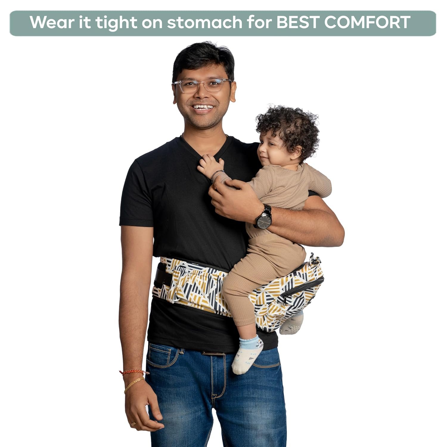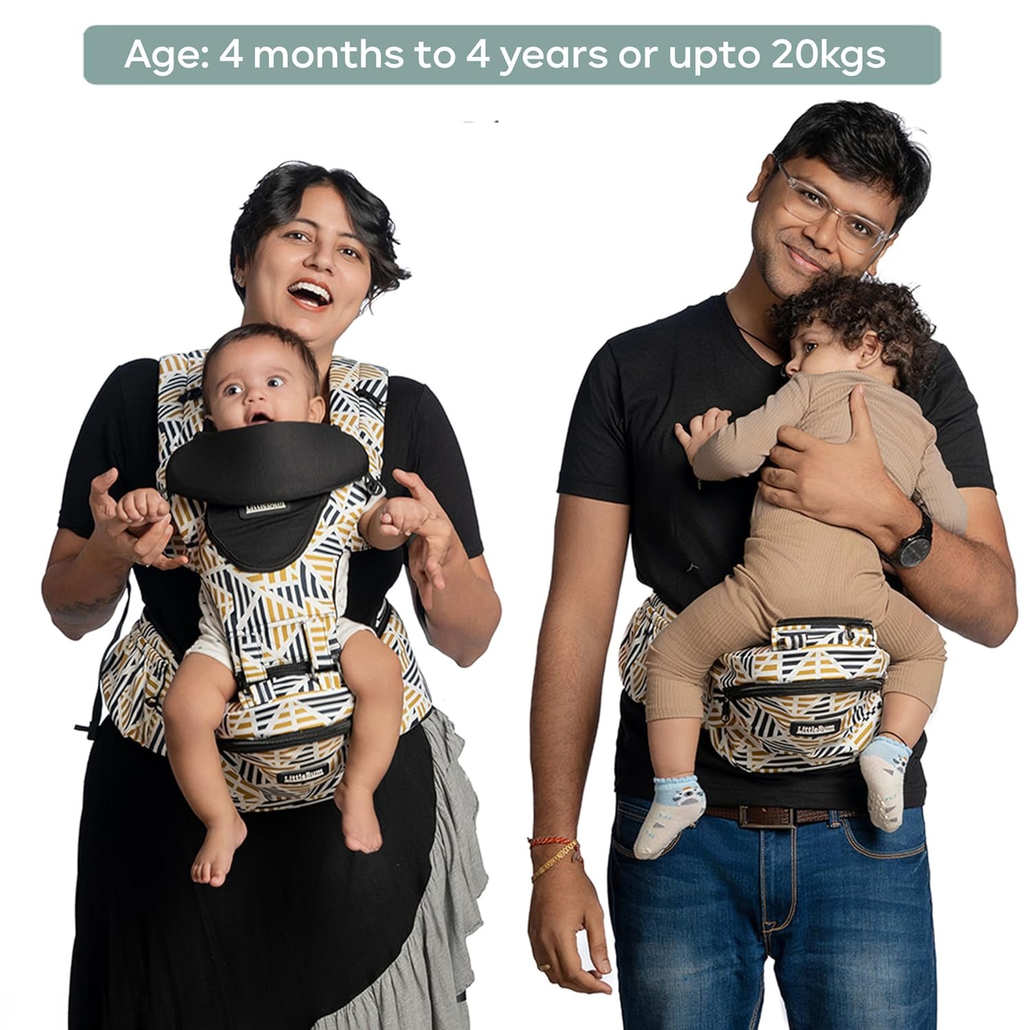 LITTLEBUM Yellow Pyramid Detachable Hip Seat Baby Carrier | Adjustable, It Supports Up To 20 Kg | Front And Back Carrying, This Versatile Carrier Is Ideal For Hiking And Everyday Use., Toddler