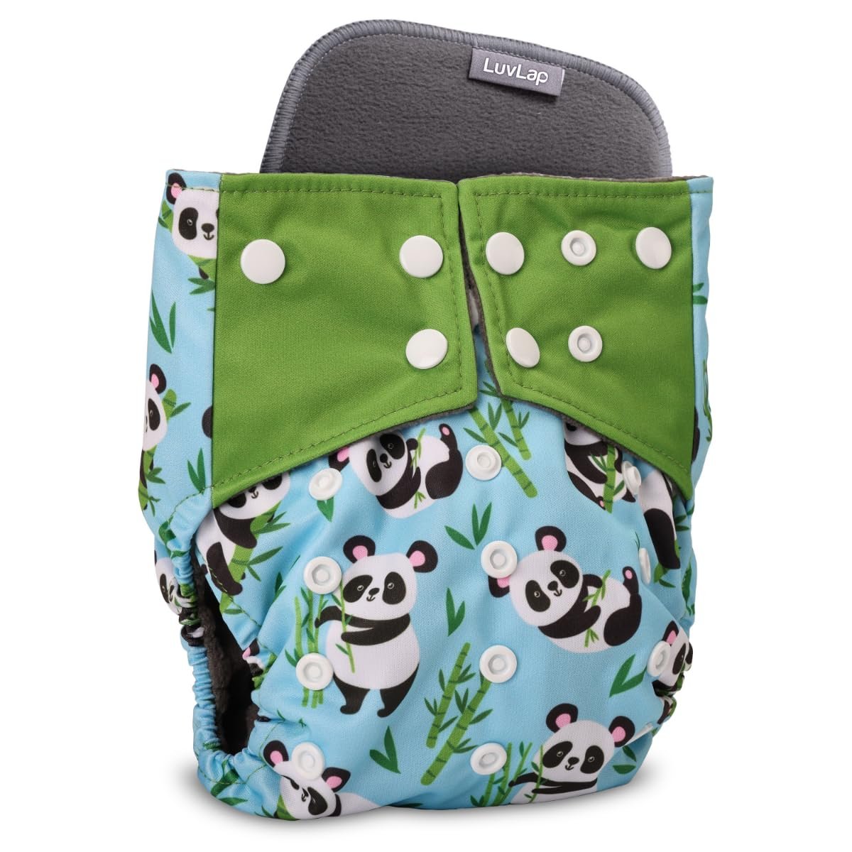 LuvLap Reusable Baby Cloth Diaper, Double Leak Guard, High Absorption, Quick Dry, Stain-Proof Comfort & Protection, 3m+, Adjustable Waist & Height with snap Buttons, Absorbent Insert, Blue Panda