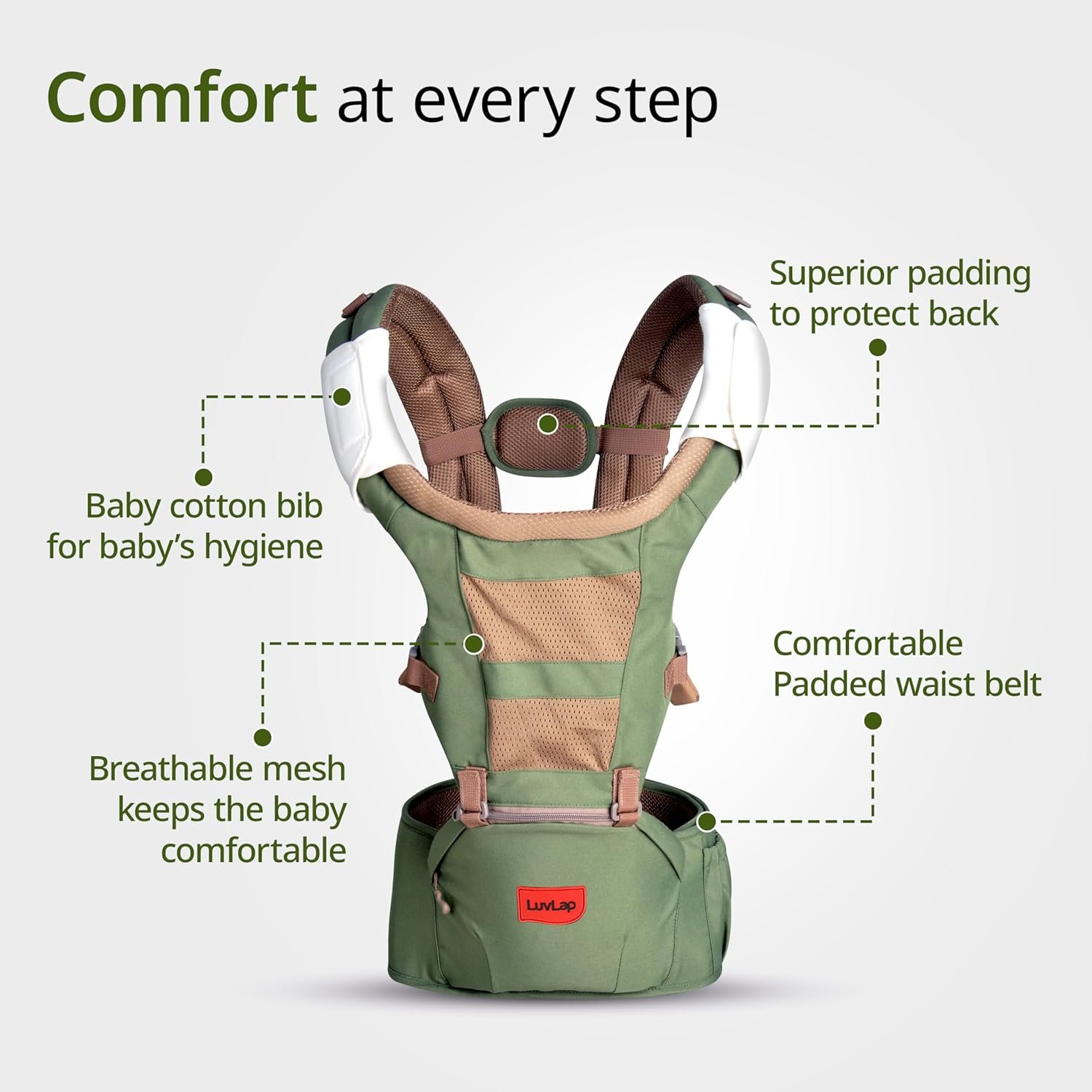 LuvLap Royal Hip Seat Baby Carrier with 4 Carry Positions, Baby Carrier with Hip seat for 6 to 24 Months Baby, Adjustable New-Born to Toddler Carrier, Max Weight Up to 15 Kgs (Green)