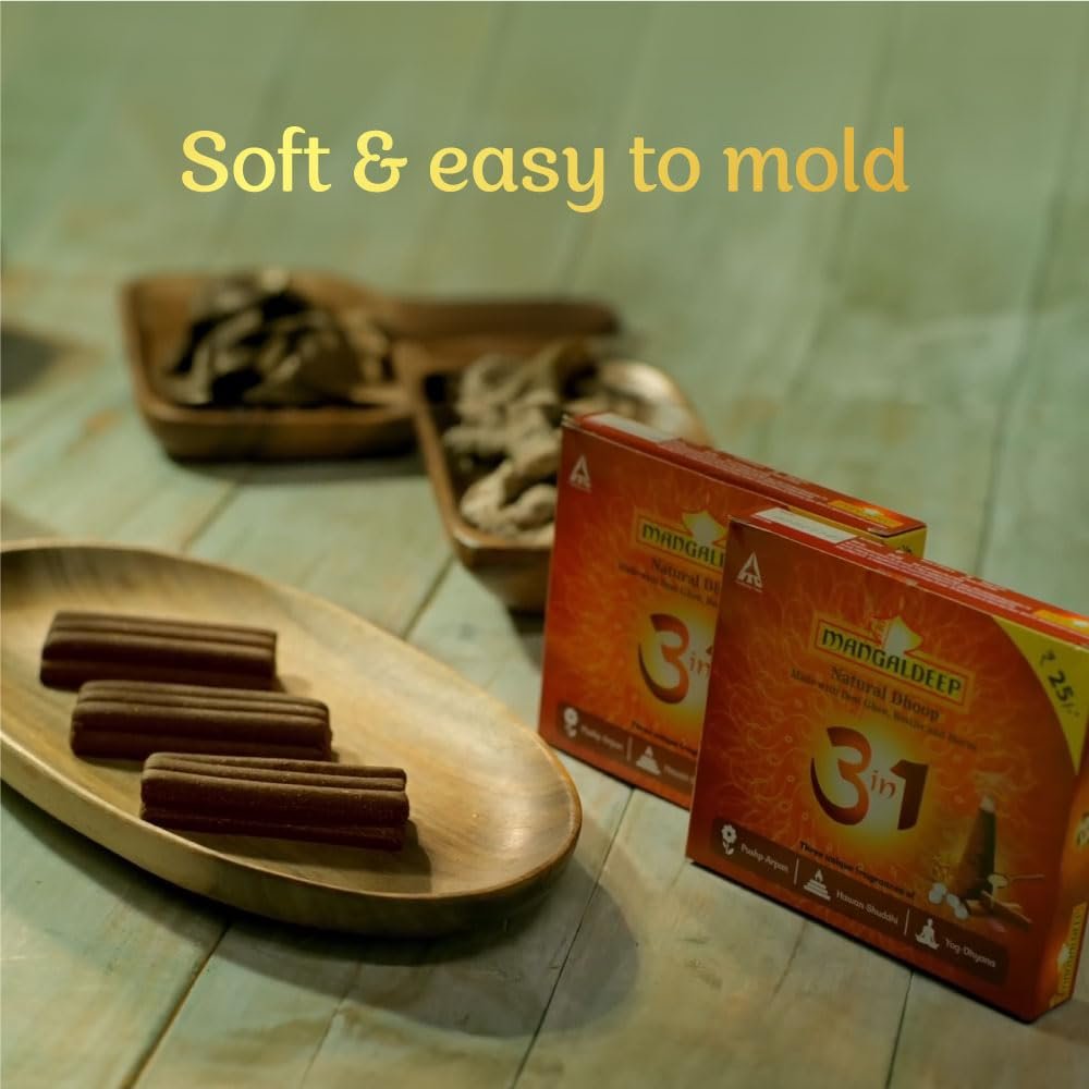 Mangaldeep Dhoop 3 in 1 – Made with Desi Ghee, Resins & Herbs – Easy to Mold Wet Dhoop (140gms)