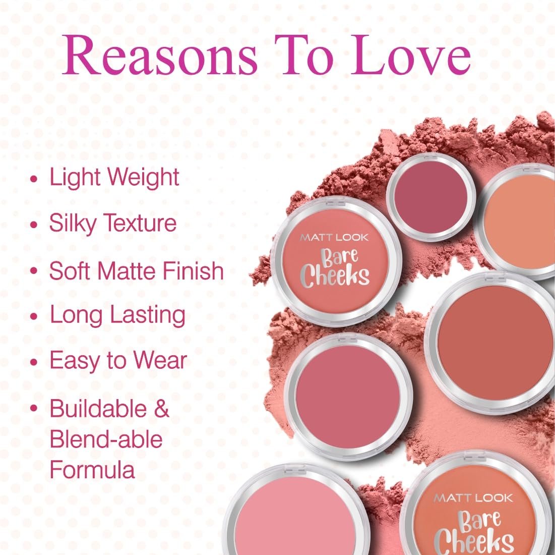 Mattlook Bare Cheeks with highly blendable shades | Pigmented Blusher for a Natural Flush |Sunset Cuise 04, 12g