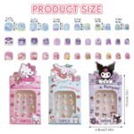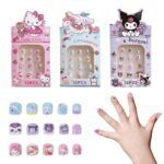 ASSORTED KAWAII SANRIO PRESS ON NAIL SET: The Kawaii Sanrio series press-on nails set features three distinct character themes: Kuromi, Hello Kitty, and Cinnamoroll. With twelve assorted-sized nails in each set, the variety ensures every child can find the perfect fit.