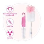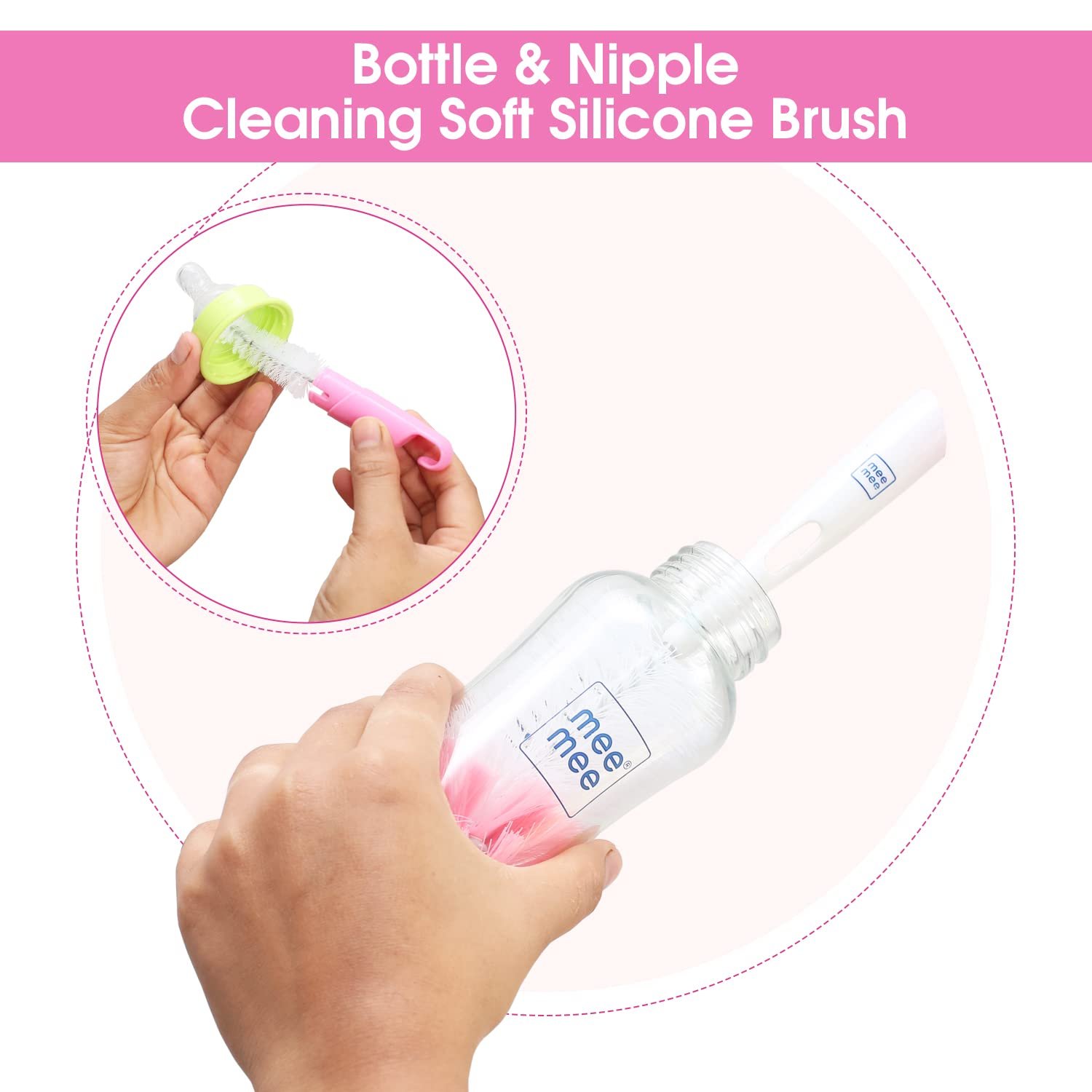 Mee Mee 360° Movable Nylon Bristle Baby Feeding Bottle Cleaning Brush & Nipple Cleaner Combo | Ergonomic Handle | BPA Free Easy to Clean Bottle Corners for Narrow Neck & Wide Neck (Pink)