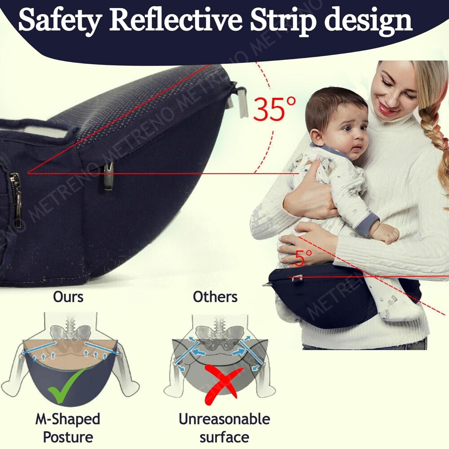 Metreno 9 in 1 Baby Carrier for 0 to 3 Year Hip Seat Carrier for Babies Kangaroo Bag with Waist Belt Infant Carrier for New Born with Cover Support Toddler Carrier for Travel