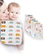 Package includes : 5 pcs Soft Muslin Cotton Whie Napkins with cute attractive prints