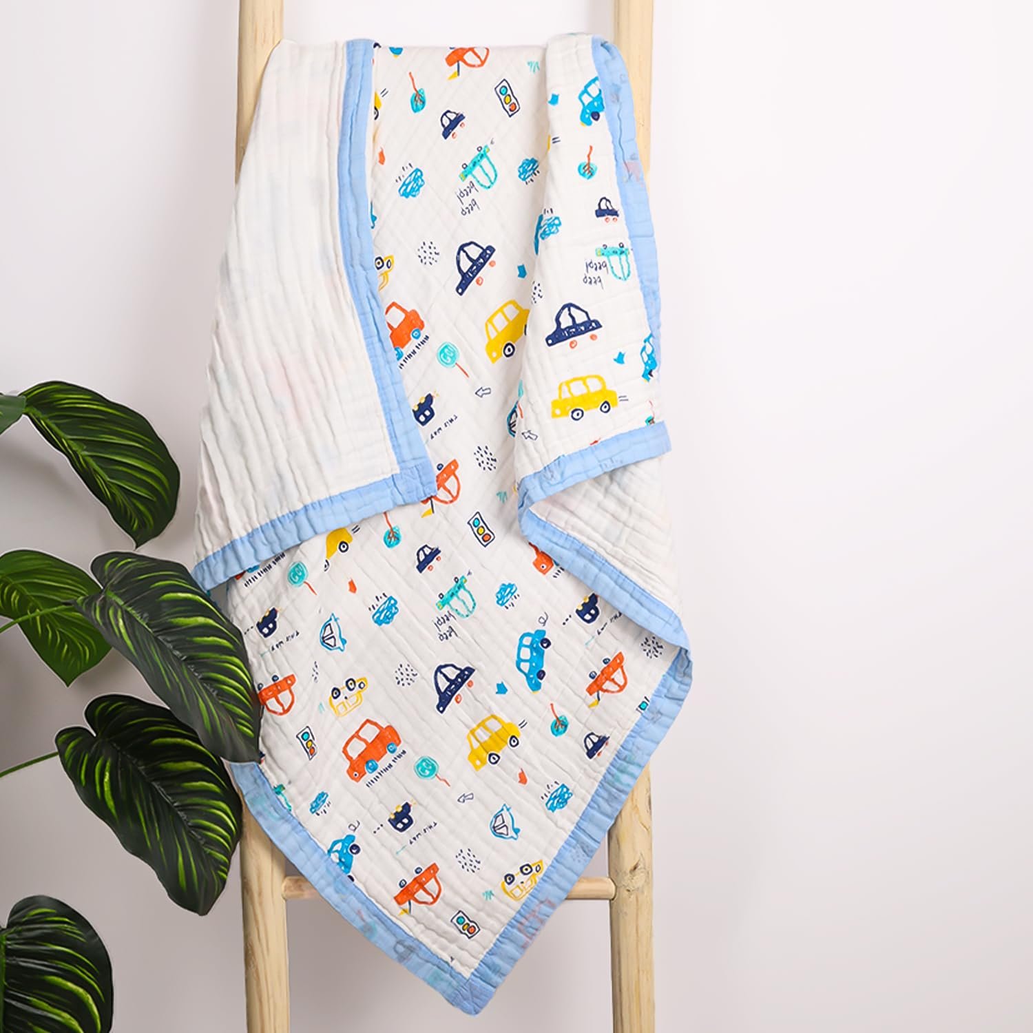 MOM’S HOME Pure Organic Cotton 6 Layer Muslin Blanket for Baby | Ultra-Soft Swaddling Towel for Newborns and Toddlers |100 x100 cm | 0-3 Years (Car)