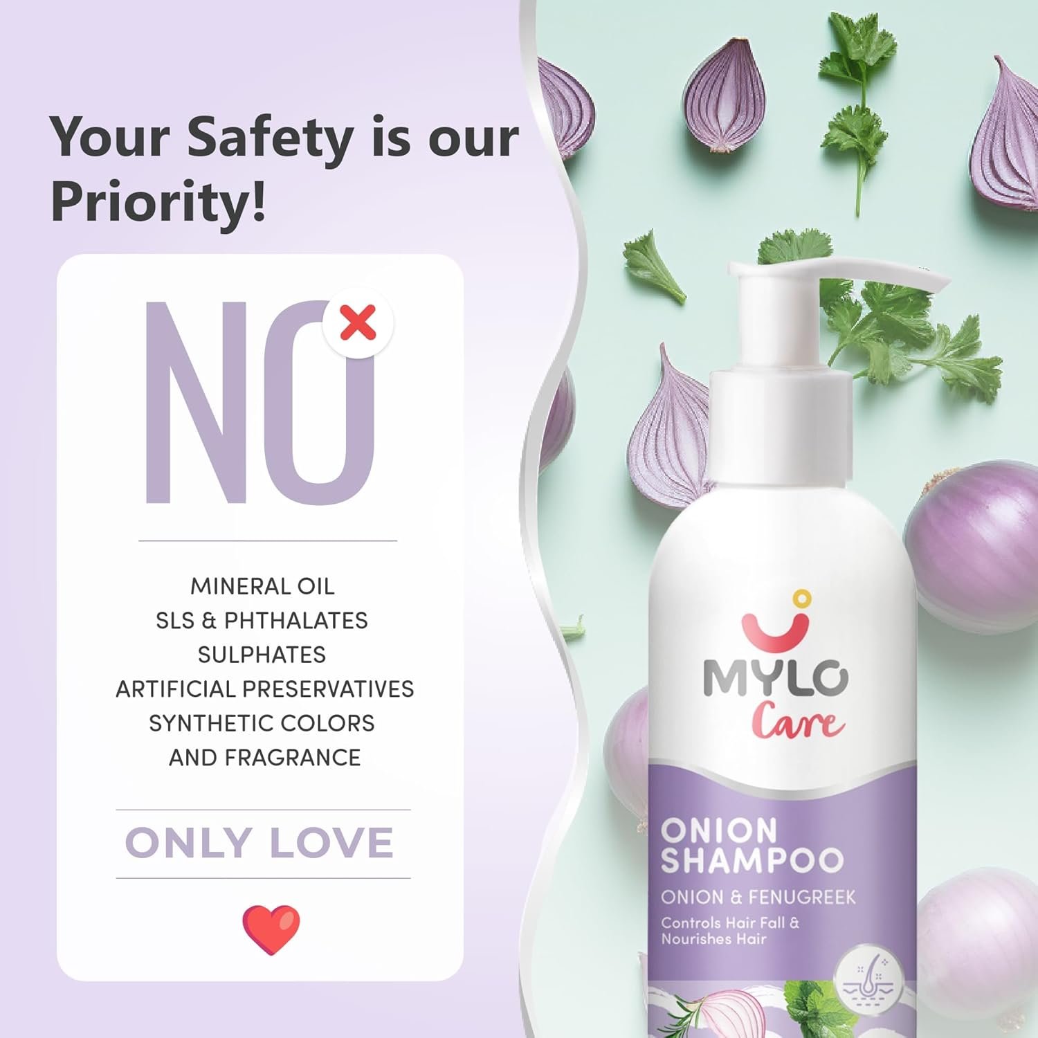 Mylo Care Anti Hair Fall Shampoo 200ml| Contains Onion Oil, Bhringraj and Plant Keratin for Hair Fall Control and Frizz Free Hair|No Silicones|No Parabens