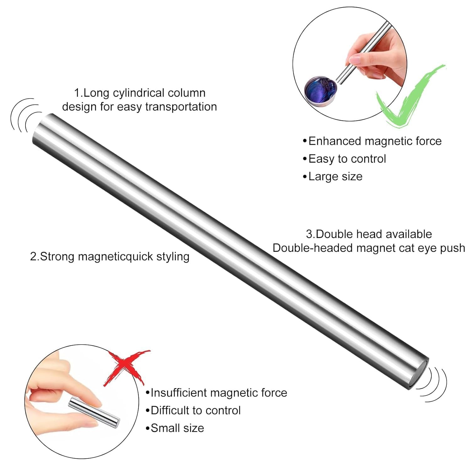 High Quality — Using new magnetic materials and manufacturing technology to make it more magnetic and safe. Our cat eye tool can helps you easily obtain the cat’s eye effect within 5-10 seconds. (Tips:The center of the double-ended pen is not magnetic, which prevents unwanted effects)