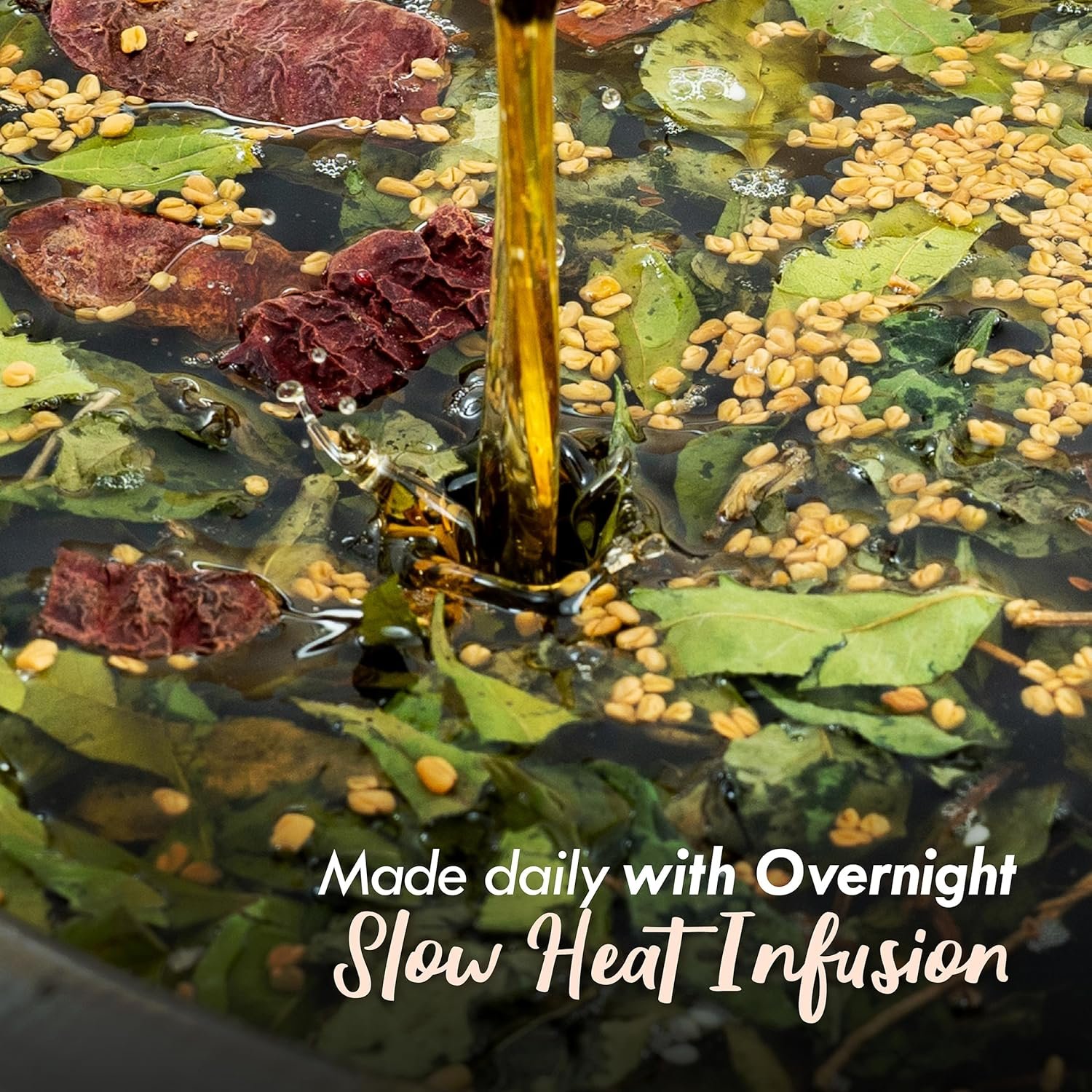 Ingredients:-Hibiscus flowers, hibiscus leaves, neem, curry leaves, amla, bhringraj, fenugreek in multiple oils like sesame, mustard, coconut, castor, jojoba, argan. Hibiscus Flowers & Leaves -Hibiscus is rich in vitamins and minerals that stimulate hair follicles, helps healthy hair growth and reduces hair loss. Bhringraj & Curry Leaves – Bhringraj is like a helper that makes hair grow stronger and more. It wakes up sleeping hair roots
