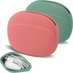 NEOUTH 2 Pack Silicone Headphone Organizer Bag Data Cable Storage Case Portable Wired Headphone Earphone Organizer Mini Key Box (Green and Red)