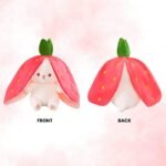 Our cute reversible pillow plush! transforms from a strawberry or carrot design into a cozy white bunny when you unzip