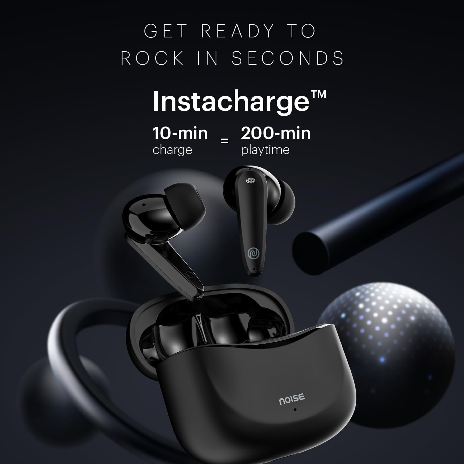 Noise Buds VS106 Truly Wireless in-Ear Earbuds with 50H Playtime, Quad Mic with ENC, Instacharge(10 min=200 min),Ultra-Low Latency(up to 40ms), 10mm Driver, and BT v5.3 (Jet Black)