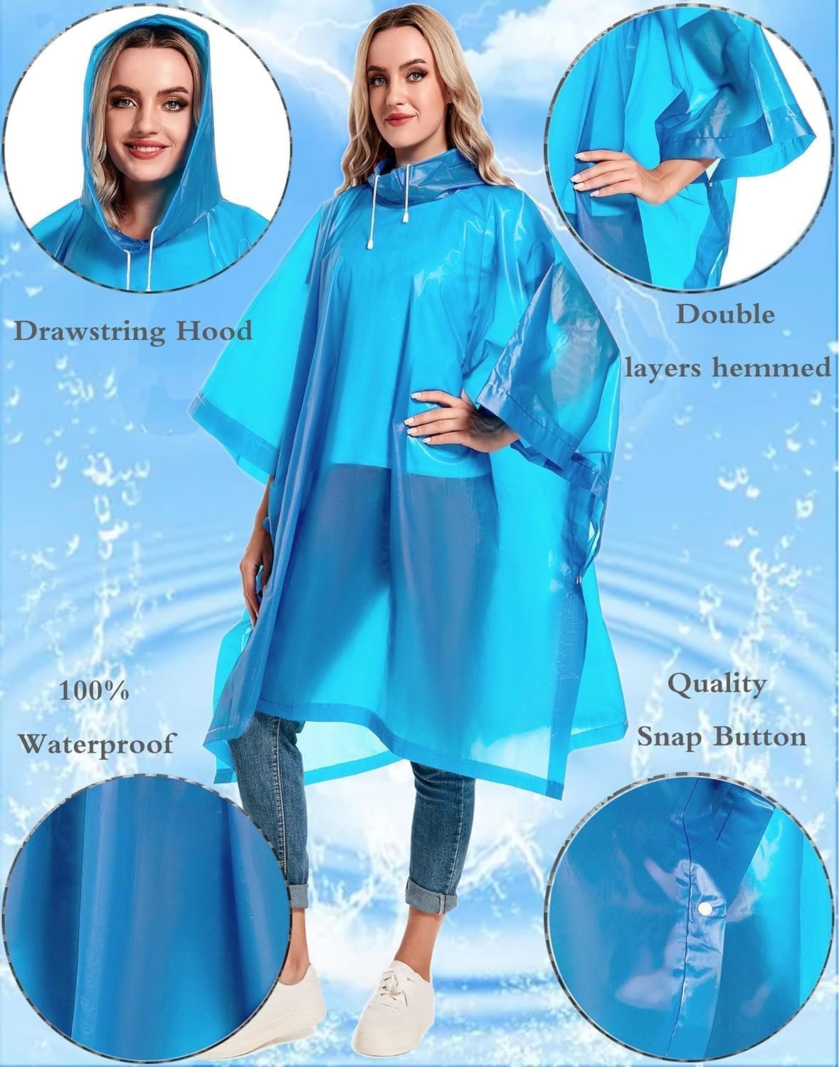 Pivalo EVA Raincoat Transparent Hooded Water Resistant Poncho Rain Jacket with Sleeves for Women Men Camping Rainy Season Travel (Color-Blue)