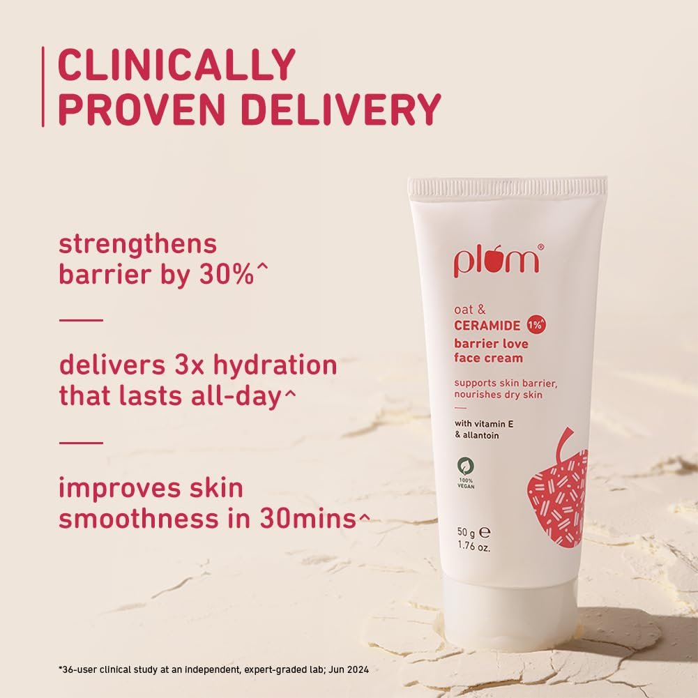 Plum Oat & 1% Ceramide Barrier Love Face Cream | Repairs, Strengthens & Maintains Skin Barrier | Moisturizer with Vitamin E & Allantoin | For Normal, Dry Skin | Women & Men | 50 g
