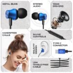 pTron Boom Play in Ear Type C Wired Headphones with Mic, 10Mm Drivers for Pristine Audio, 1.2M Tangle-Free Cable, in-Line Controls, Snug-Fit Metal Buds & Wide Compatibility (Bold Blue)