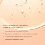 Quick absorbing nature infused ingredients Quinoa, Bao bab oil, Hydrolised protien blend helps to strenghtens hair and damage repair, anti frizz effect.
