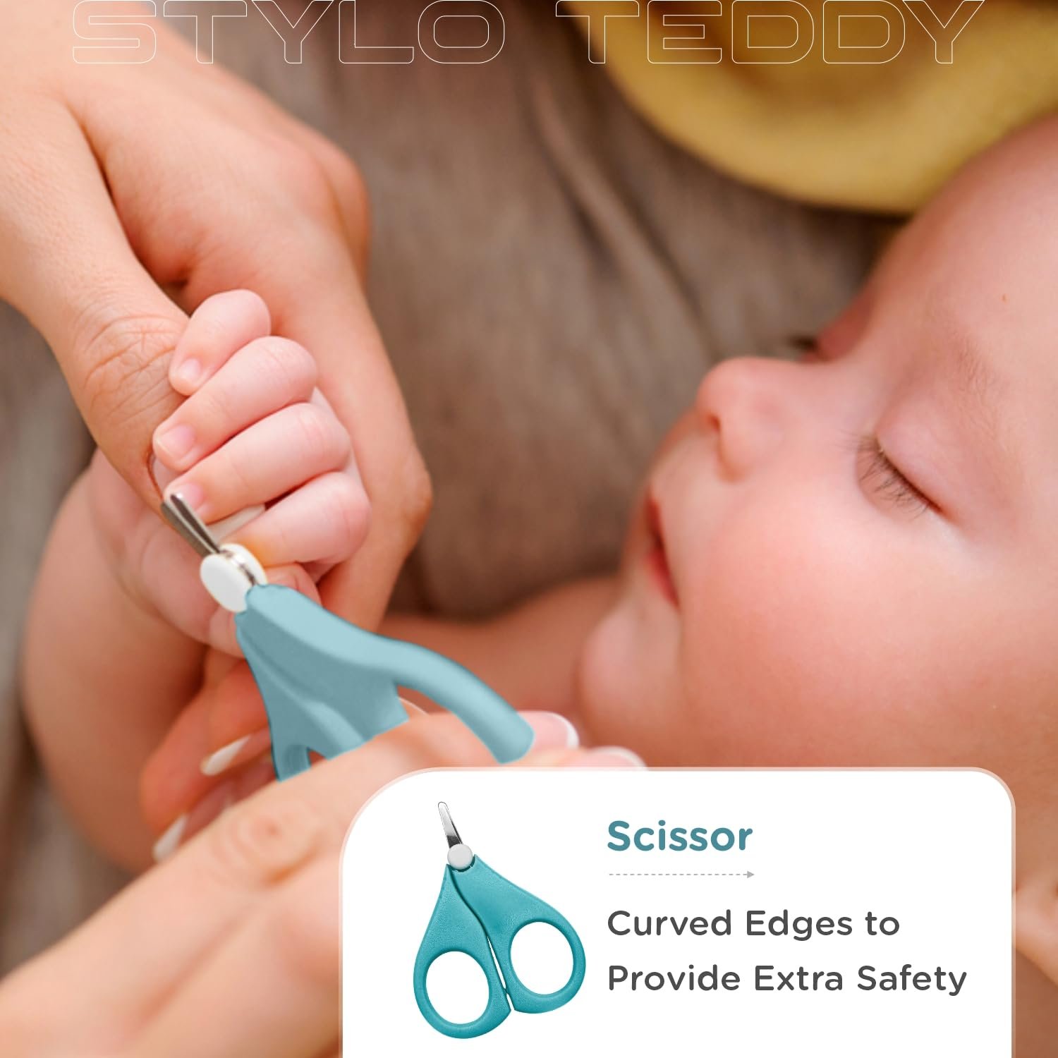Scissor: Snip your baby nails with Stylo Teddy scissors. It has rounded tip with curved edges to provide extra safety to your baby