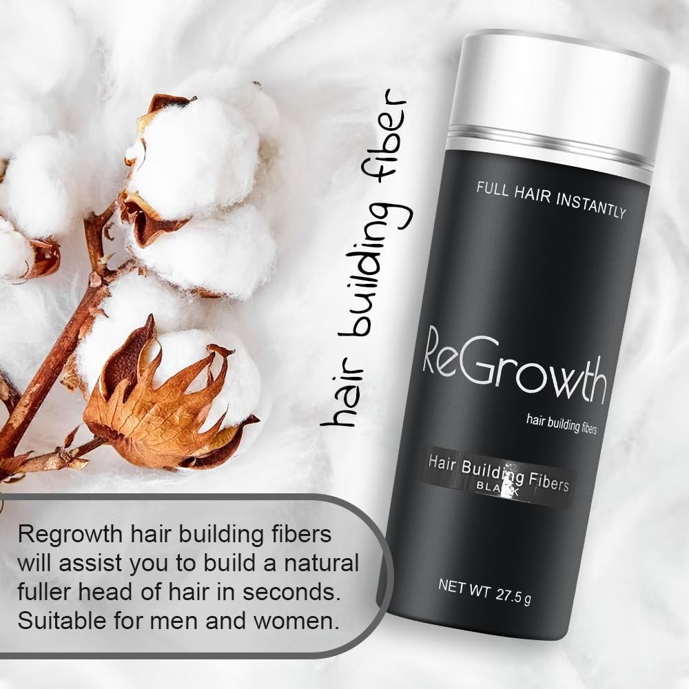 REGROWTH Hair Building Fibers (Black) 27.5 Hair Fiber For Thinning Hair & Bald Spots Hair Loss Concealer In Seconds Hair Thickening Fibers For Men & Women, 80 Grams
