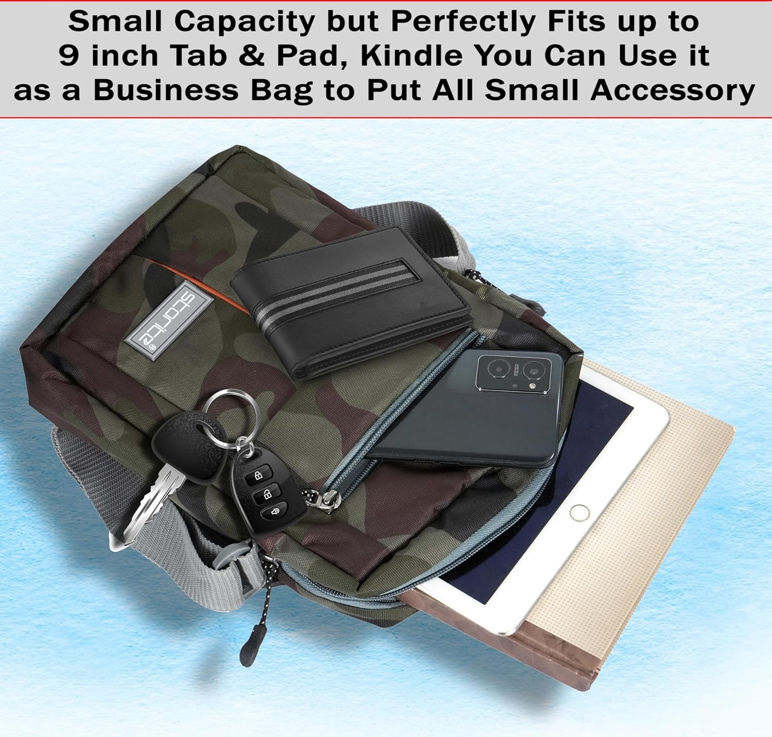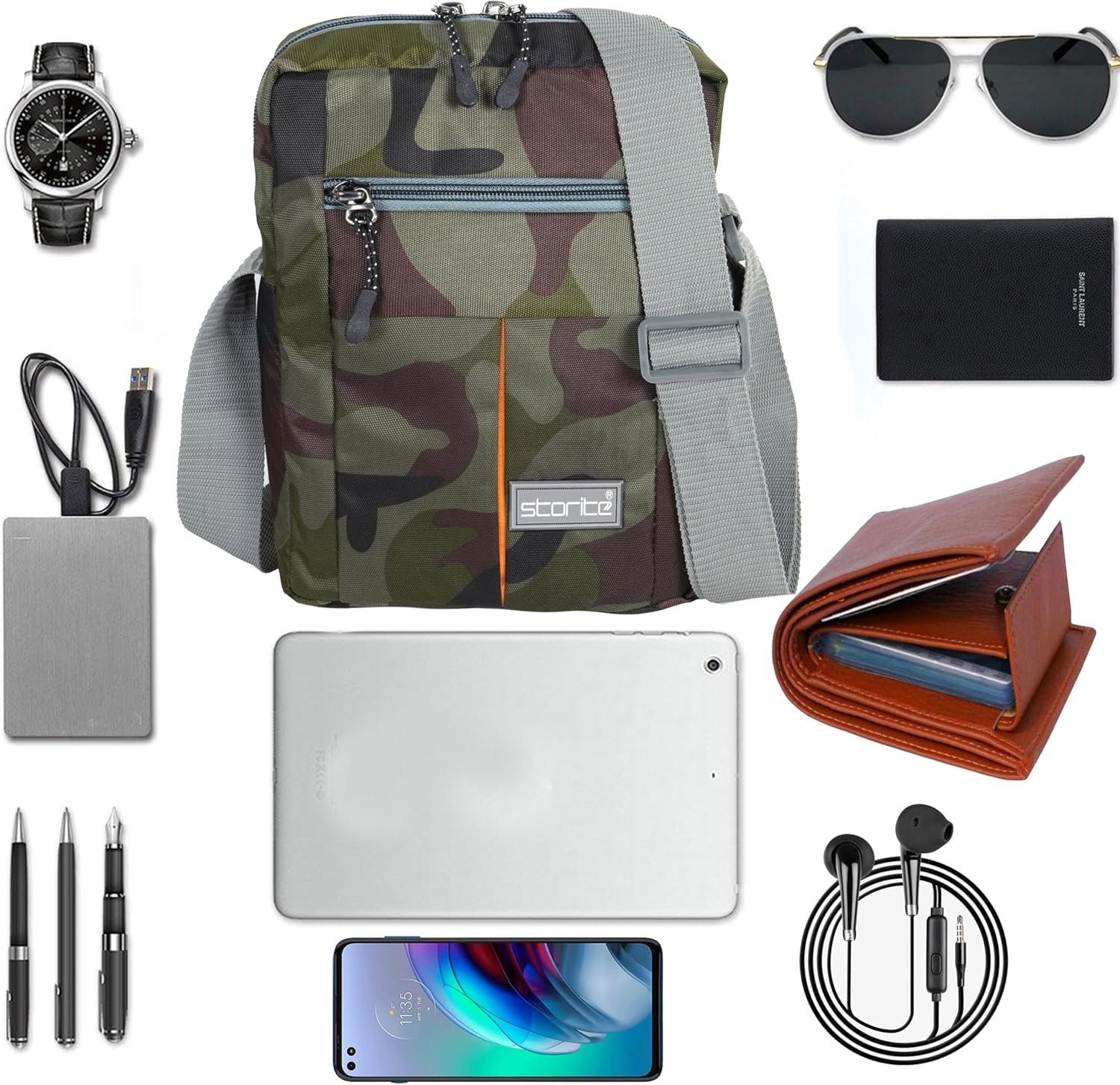 Brand: Storite Product Material: Nylon. Product Dimension: Length (Horizontal distance) – 25 cm, Height – 19 cm, Width – 7 cm. Small capacity but perfectly fits up to 10″ Tablet and you can use it as a business bag Product Description: Perfect messenger bag/shoulder bag/cross body bag/handbag/ hiking or travelling Bag, suitable for office, outdoor and other occasions. Freely adjustable shoulder strap, you can adjust it according to your height and comfort requirements. The stitching on this product is nice and very strong.