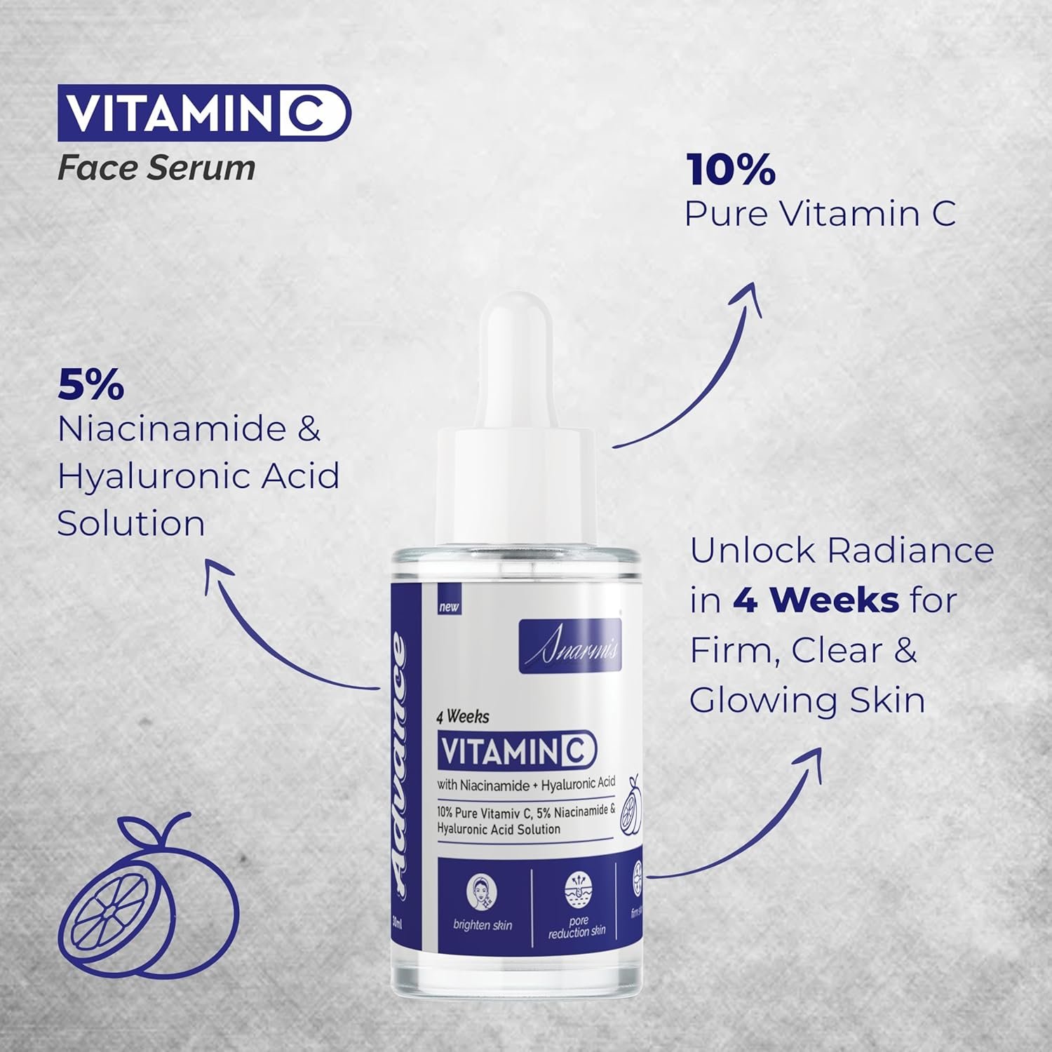 Snarmis Advance Vitamin C Face Serum with 5% Niacinamide & Hyaluronic Acid & 10% Pure Vitamin C For Both Men & Women | For Brighten Skin | Increases Skin’s Glow Instantly and Reduces Spots Overtime | for Pore Reduction Skin | For Firm Skin – 30 ML