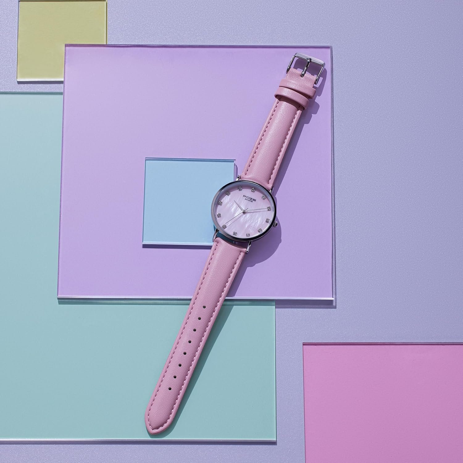 Sonata Poze Quartz Pink MOP Dial Pink Leather Strap for Women-SP80084SL01W