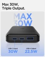 30W Fast Charging: Supports up to 30W output and input charging via 2 X PD3.0, PPS Type-C ports and up to 22.5W fast charging via QC3.0 USB-A port(*Multi-Output: 22.5W Max). Compatible with mobile phones, tablets, laptops and more.