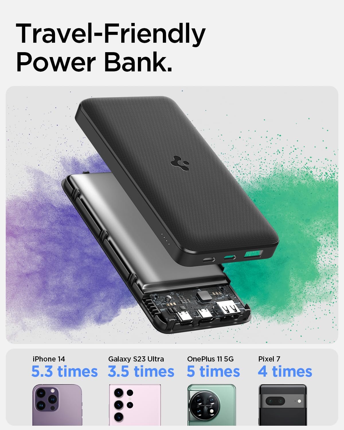 20000mAh of Robust Power: With 20000mAh at your disposal, power up your iPhone 14 for 5,3 extra charges and your OnePlus 11 for 5 extra charges!