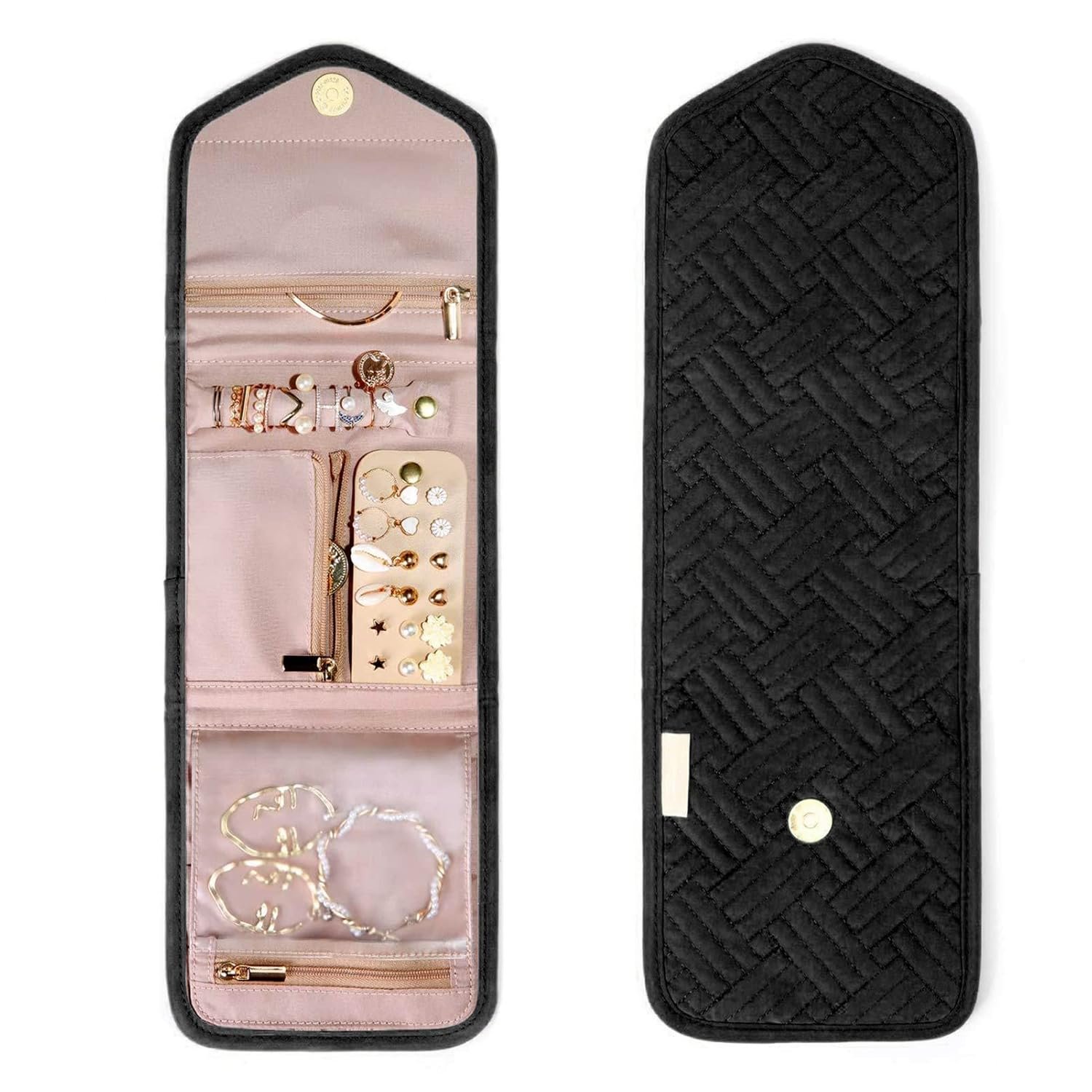 Multi-Compartment Organization: This jewelry organizer bag features five distinct storage zones including panels, buckle straps, compartments, and pockets, providing a versatile and efficient way to keep your jewelry collection organized and protected.