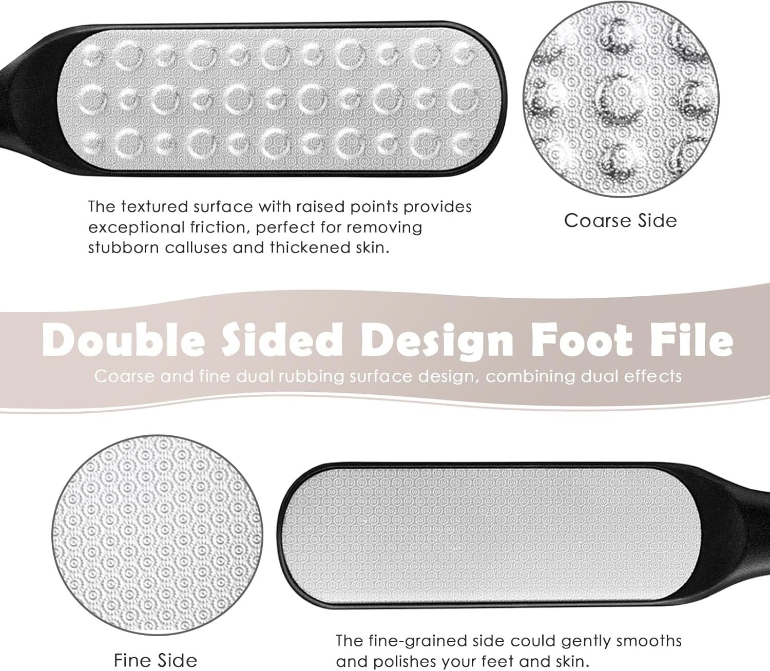 【Safe & Professional】Unlike traditional foot scrapers that can harm your skin, our foot grinder with 2 different surfaces suited for different callus conditions, is designed to safely & efficiently tackle calluses. Want to find a reliable callus remover, foot scrubber, or effective pedicure tools, our foot rasp is the ultimate solution. Perfect for high heel enthusiasts, those with thick calluses. Say goodbye to stubborn dead skin and hello to smooth, pretty feet!